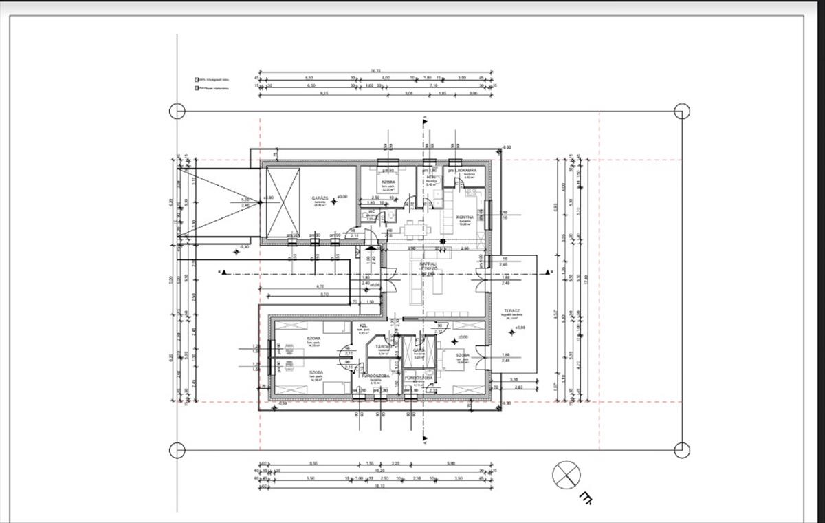 - amerikai konyhás nappali terasz kapcsolattal 4 szoba kamra fürdőszoba, wc, előtér, 2 állásos GARÁZS