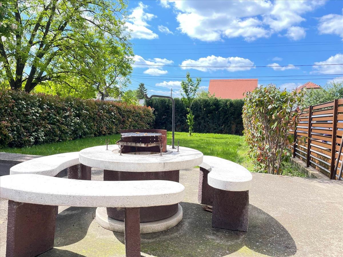 -809 m2 saroktelek, ahol egymástól elszeparálták a több gépjármű kényelmes parkolására alkalmas térkövezett udvart a gondozott locsolórendszerrel ellátott parkosított kerttől, ahol a 40 m2 -s teraszon süllyesztett jakuzzinak előkészítés is található.