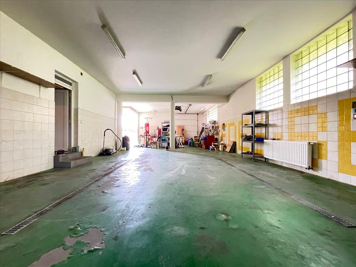 -124 m2 nagyságú nagy belmagasságú, jól szellőző garázs/ raktártér természetes fénnyel rendelkezik, ami gépjárműtárolóként, műhelyként és raktárhelyiségként is funkcionált.