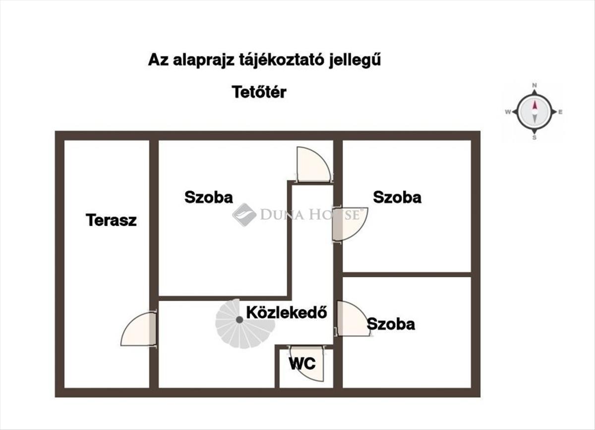 A házban a földszinten található egy étkezős konyha, egy nappali, egy kis szoba és egy fürdő. a tetőtérben három szoba, erkéllyel, és egy wc kapott helyet.