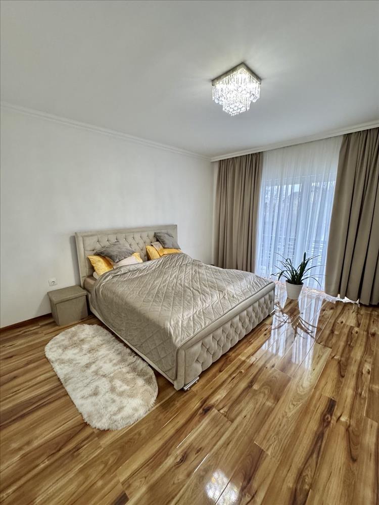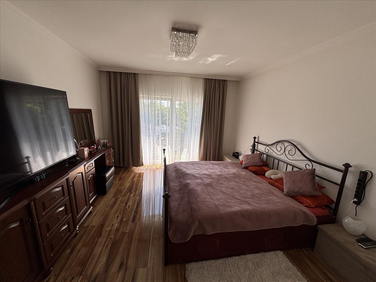 Az emeleti szinten található 2 db különnyíló, tágas hálószóba (mindkettő szoba erkélykapcsolatos), egy gardrób szoba, illetve egy zuhanyzós fürdőszoba és WC.