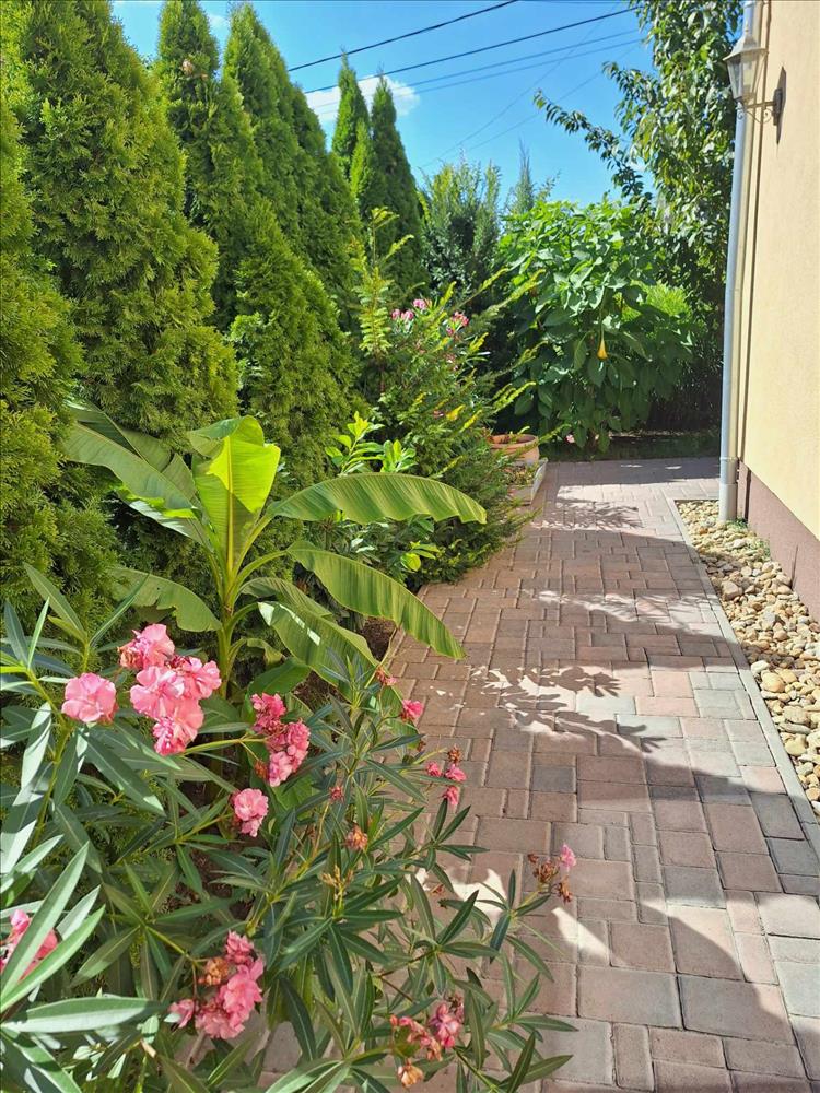 A kert szépen parkosított, hangulatos, gyönyörű örökzöld bokrokkal illetve fákkal.