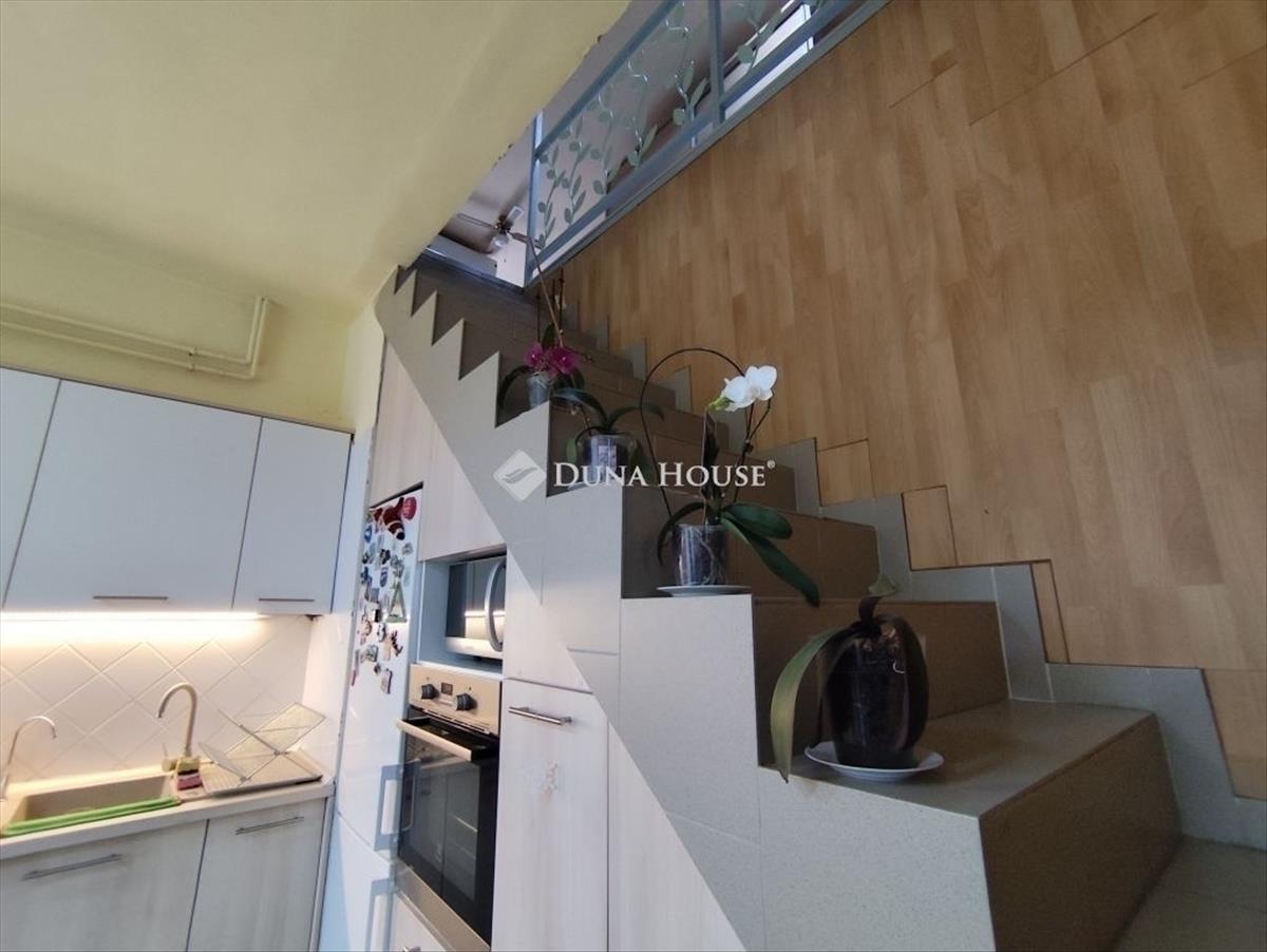Az alsó szinten helyezkedik még el egy előszobának használt helyiség, amely külön bejárattal is rendelkezik és ezen keresztül érhetjük el a lakóteret, ide érkezve egy meseszép, teljesen felújított konyha található amely optimálisan van kialakítva:bojler, hűtő, mikró az emeletre vezető lépcső alá igényesen be van építve.