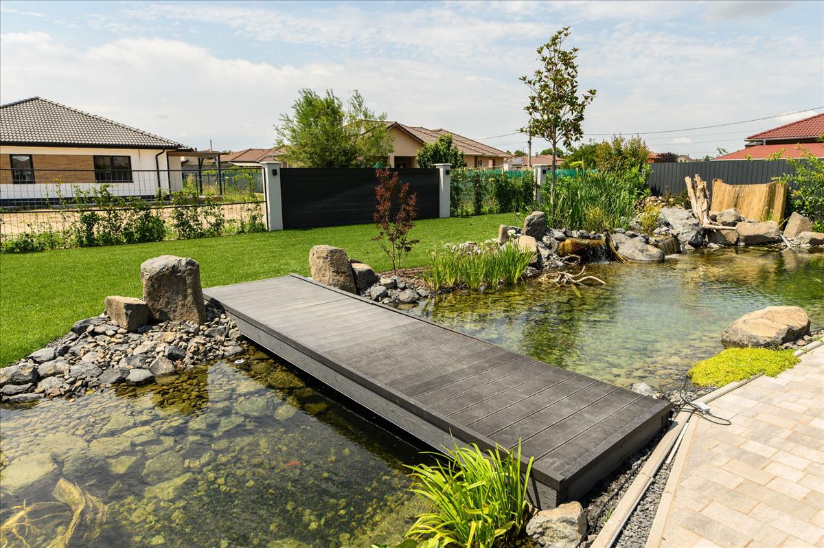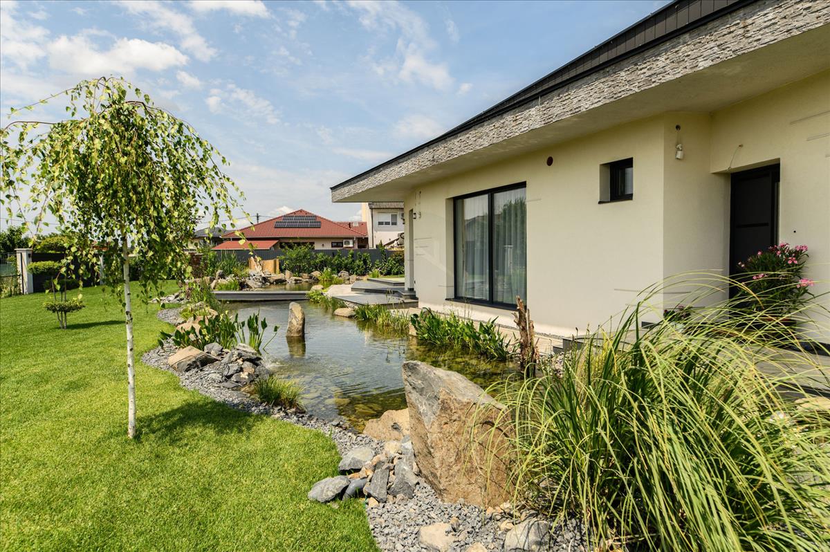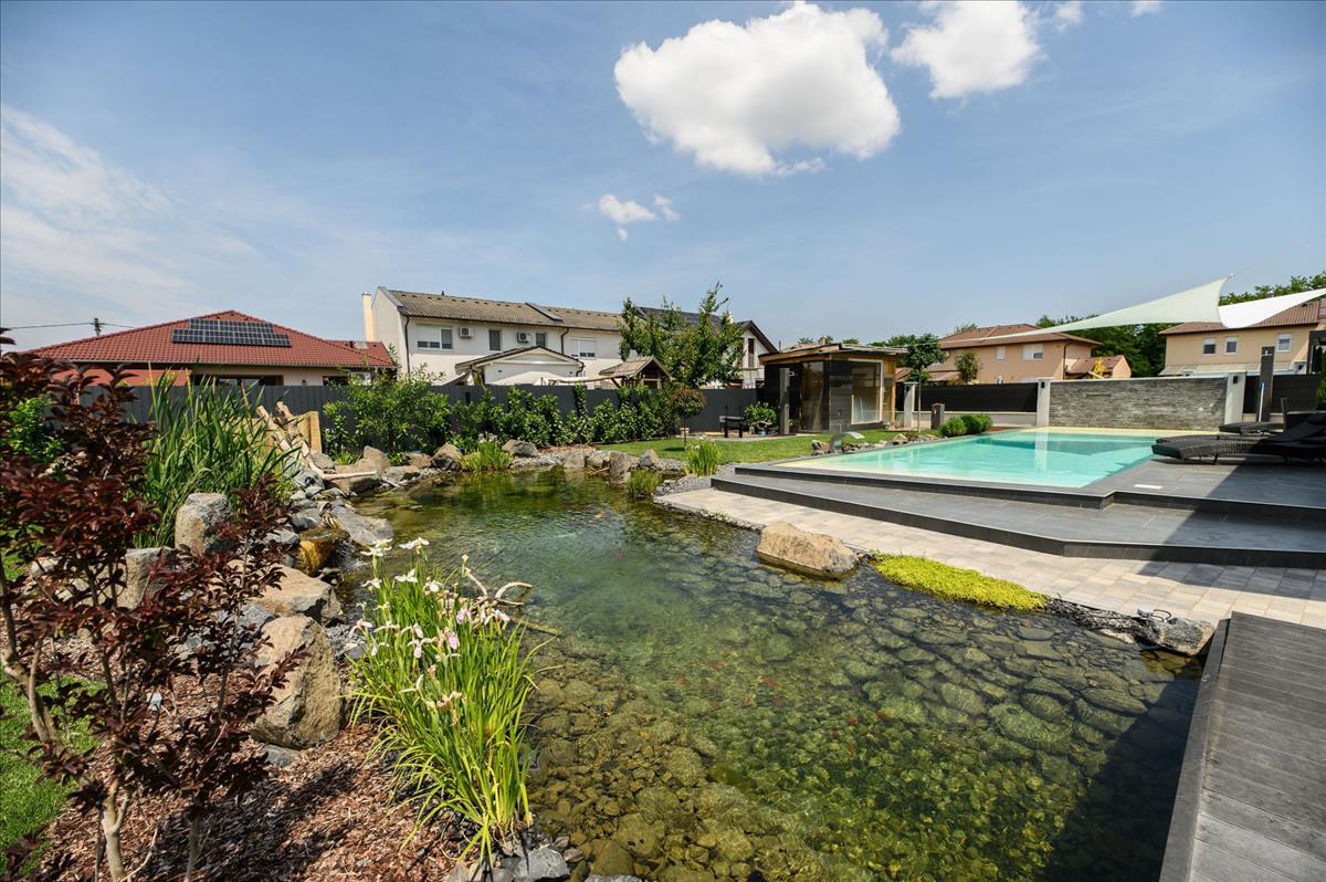 A házhoz tartozó óriási terasz maga a paradicsom, ahol a reggeli kávétól az esti borozásig élvezheti a szabad levegőt és a napsugarakat. a forró nyári napokon a medence nyújt felfrissülést, de az igazi különlegesség a több mint 100 díszhallal teli kerti . Tükörtiszta vizével és színes élővilágával azonnali kikapcsolódást nyújt, igazi harmóniát teremtve a kertben.