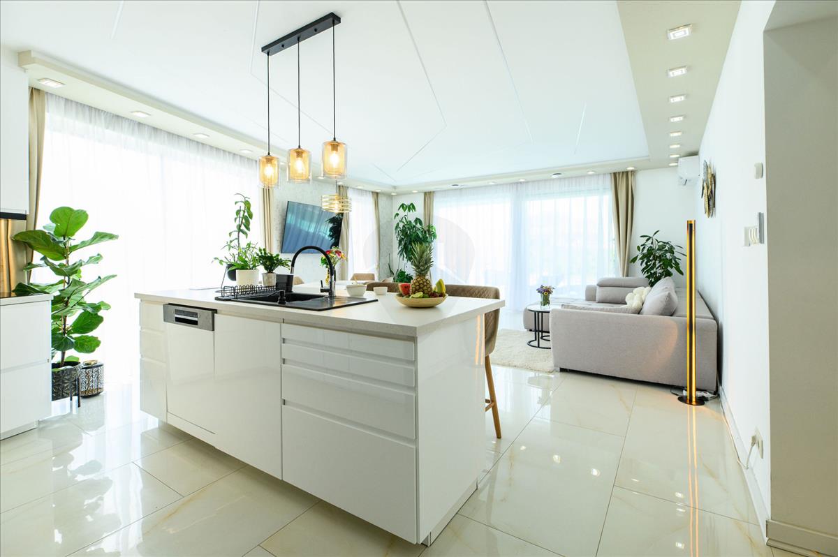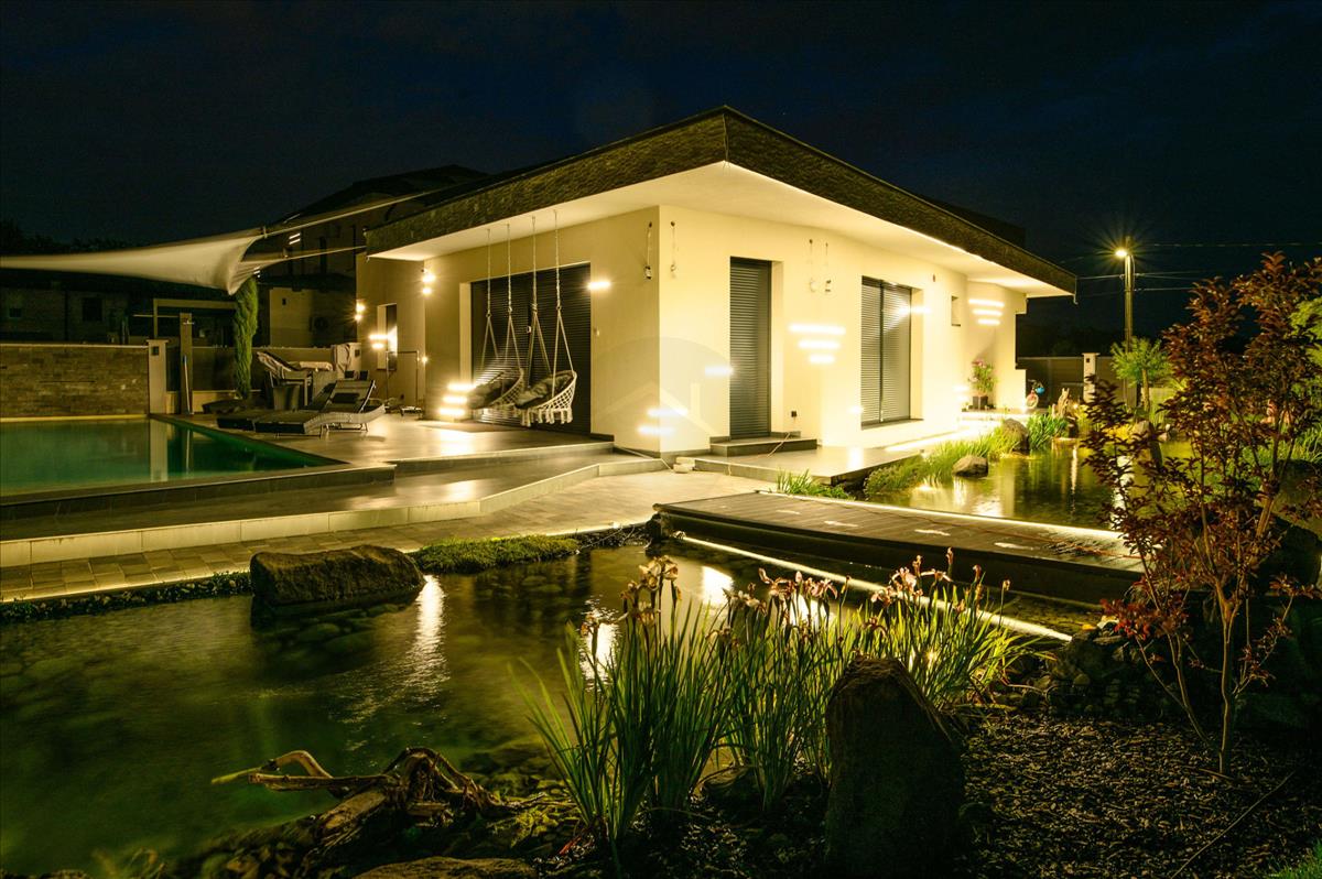 A jövő otthona ez, modern hőszivattyús fűtéssel ellátva, ami nemcsak környezetbarát, de rendkívül gazdaságos is. a hangulatvilágítás és a ledek sokasága pedig gondoskodik az igazi otthoni atmoszféráról, esténként egyedi fényjátékkal öltöztetve a tereket.