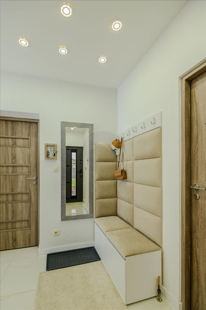 Ez a 137 nm -es családi ház a minőség és az elegancia megtestesítője. Már a belépés pillanatában érezni fogja azt a meleg, otthonos hangulatot, amit a gondosan megtervezett terek és a számos okos otthon funkció nyújt. a tágas nappali tökéletes helyszín a családi összejöveteleknek és a meghitt pillanatoknak, míg a három hálószoba mindenkinek elegendő privát szférát biztosít. Egy külön gardrób segít rendben tartani a ruhákat, a praktikus háztartási helyiség pedig megkönnyíti a mindennapokat. a két fürdőszoba és külön wc pedig a kényelmet szolgálja.