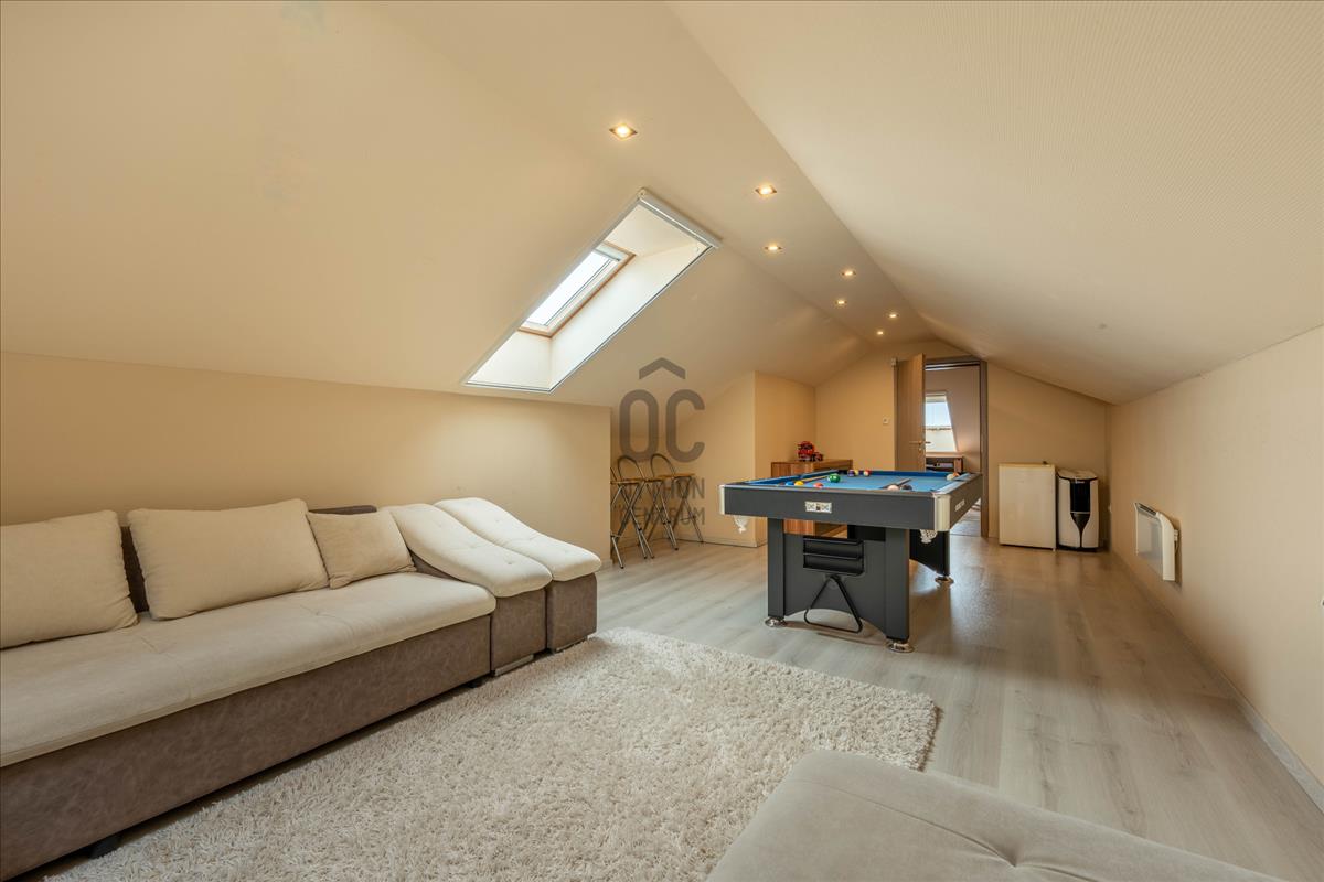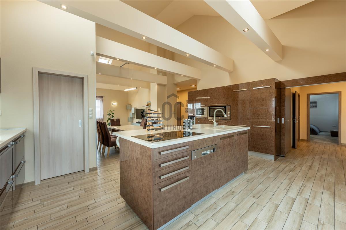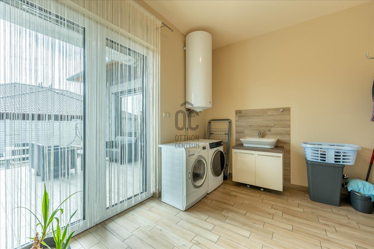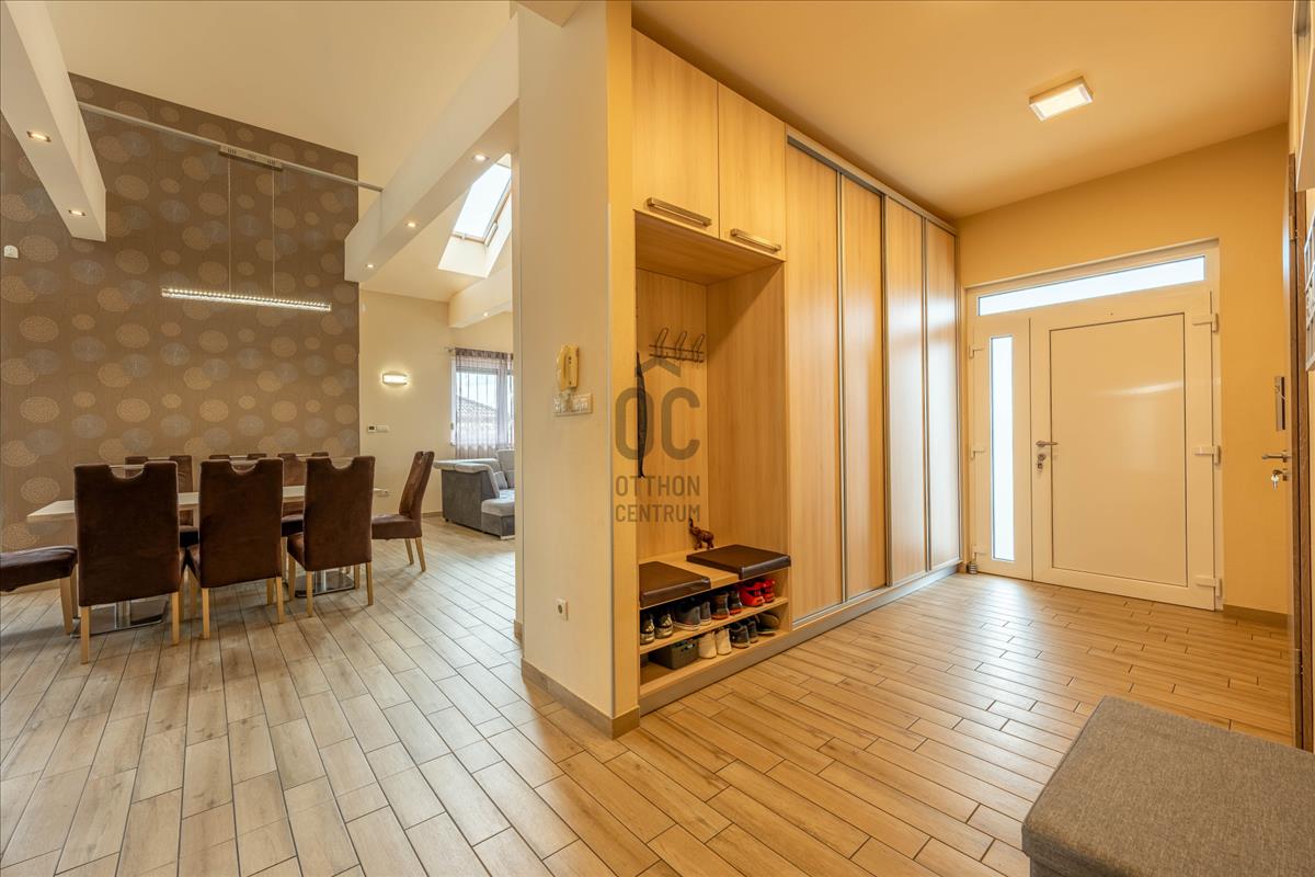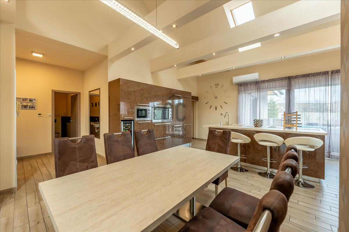 Az ingatlan egy gondozott, 800 m²-es telken helyezkedik el, összesen 242 m² lakótérrel, amelyet további 60 m² beépített tetőtér egészít ki. a ház egyik legkülönlegesebb tere a közel 80 m²-es amerikai konyhás nappali, közel 6 méteres belmagassággal és elektromos tetőablakokkal, amely rendkívül világos és tágas életteret biztosít.