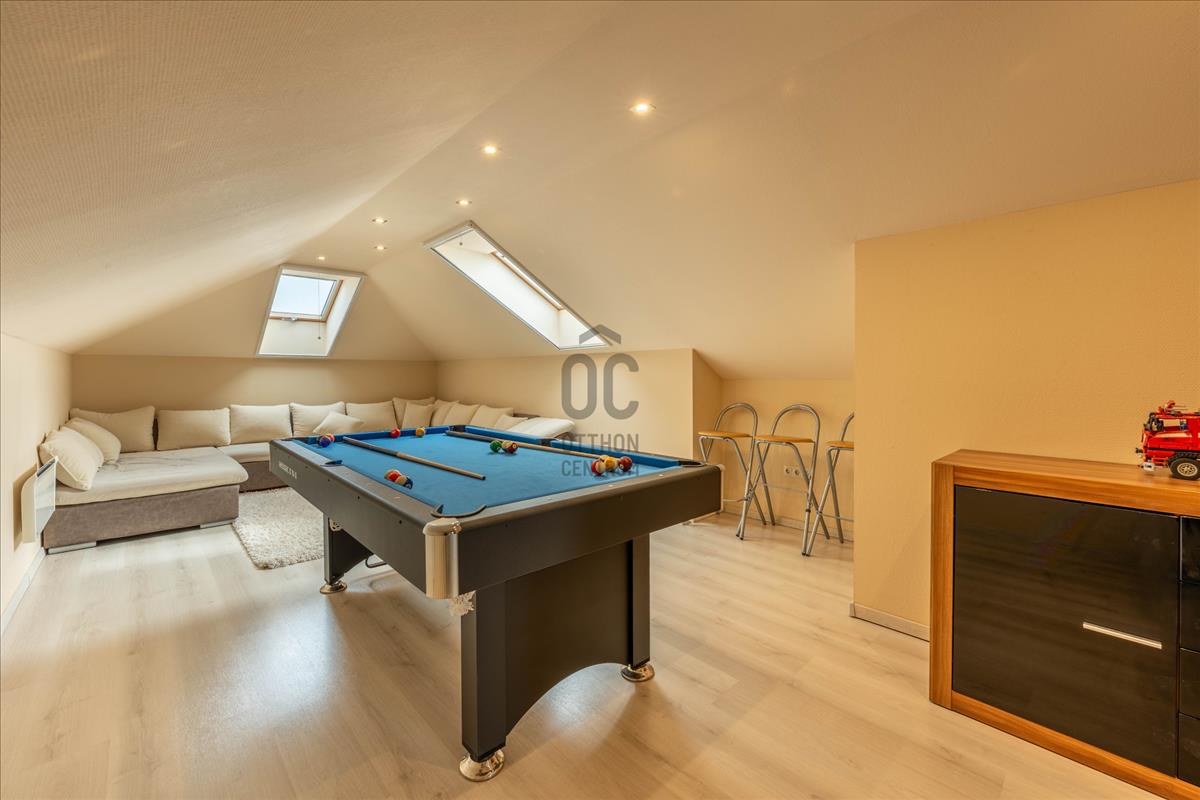A családi ház kiváló elrendezésű: a földszinten négy hálószoba található, a tetőtérben pedig további két tágas helyiség került kialakításra, amelyek dolgozószobának, vendégszobának vagy játszószobának is ideálisak.