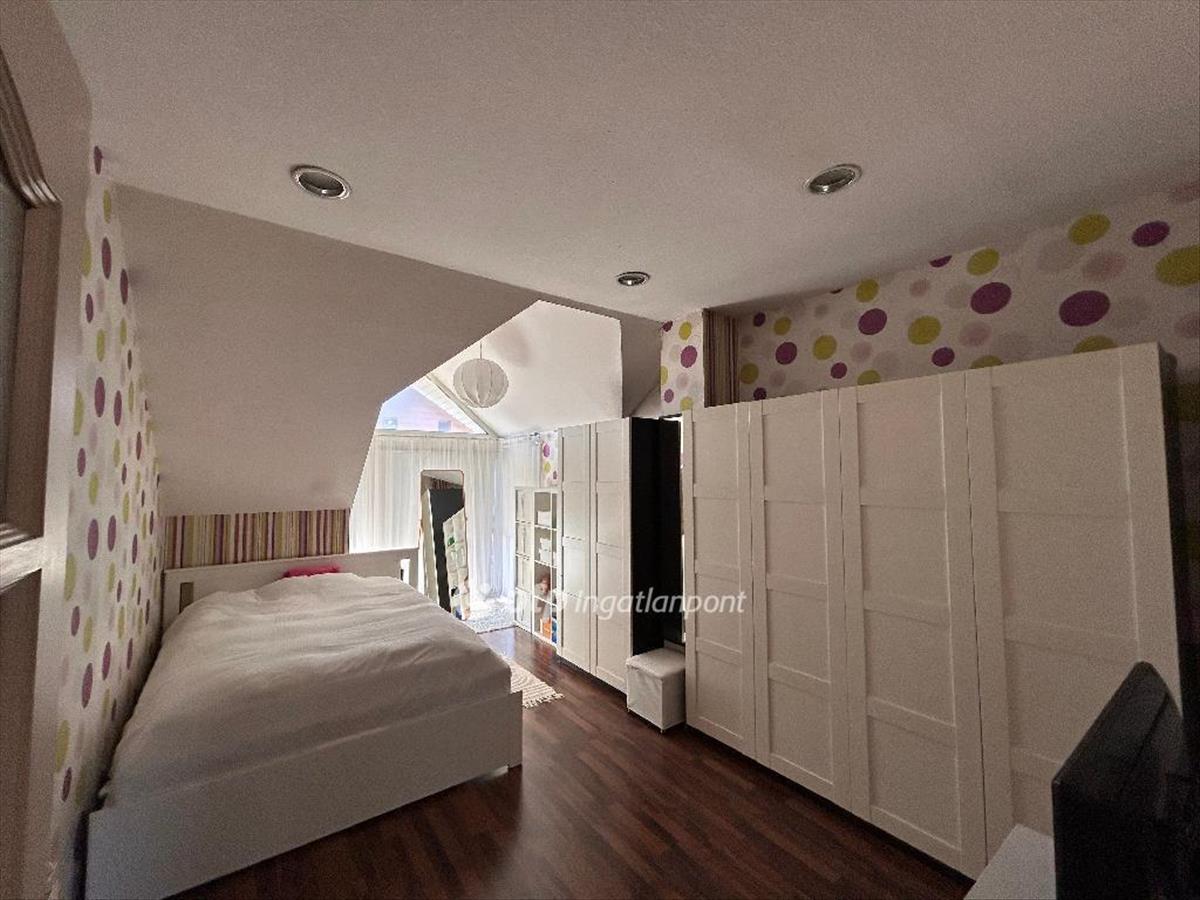 Három generációnak is kiváló minőségű lakhatást biztosító 2 szintes családi ház, aszfaltozott utcában, Fő úthoz közel. Az épületben két lakószinten 4 hálószoba, 2 nagyméretű nappali, 2 gépesített konyha, 3 fürdőszoba, 1 szeparált toalett, található. Az alsó szinten 30 m2-en mosókonyha, tároló helység lett kialakítva. a parkosított kertben épített 6x4 méteres fűthető medence, vízforgatóval. Az öntözéshez fúrt kút található. a nagyméretű emeleti szép kilátás nyílik a lejjebb fekvő szomszédos házakra. a ház teljességgel alkalmas egy nagy család minden igényének kiszolgálására, irodaközpontnak, vagy akár egy kisvállalkozás központjának. Az ingatlan azonnal költözhető! Ha, a budapesti belvárostól 25 perc autóútra, egy dinamikus lüktetésű, modern kisvárosban, a buja természetbe ágyazott lakhelyet keres, akkor jó esélye van rá hogy itt megtalálja. Dunaharaszti alsó falujában, remek elhelyezkedéssel eladó tégla családiház. Az épület tervezésénél/építésénél nagy hangsúlyt fordítottak, az átgondolt kényelmes és világos terek kialakítására. a 2 szintes épület alsó szintjén kapott helyett gépészeti helyiség, wc, mosókonyha, tárolók, mely szint szuterén így ablakokkal ellátott. a két külön bejáratú lakás, saját mérő órákkal ellátott. ( Víz, villany, gáz) a középső szinten, nappali - étkező - konyha, előszoba, az emeleten 3 hálószoba, gardrobe, fürdőszoba, wc a földszinten hatalmas D-Ny. Tájolású terasz található, mely nappali illetve hálószoba kapcsolatos, kilátással. Az épület a 1996-ban évek elején épült, 2000 környéken érte el a mai készültség fokot. Szerkezetileg jó állapotú, a jelenlegi állapotban is azonnal költözhető. Enyhén lejtős, füvesített, növényekkel beültetett, épített medencével ellátott, barátságos telek. Padlófűtés, redőnyök, homlokzati szigetelés, riasztó, fúrt kút, kazán, beépített konyha és egyéb bútorok a vételárban. Tehermentes, azonnal birtokba vehető ingatlan. a közelben buszmegálló, az új vonat állomás, kis bolt, spar, edzőtermek, pékség, általános iskola található. Hév állomás 25 perc kényelmes sétányira. Szívből ajánlom minden olyan érdeklődőnek, akinek fontos a minőség és kényelem, a jó közlekedés és valamint a központhoz való pár perc alatti közelség, mégis megnyugtató szigetként funkcionáló meghitt családi otthon!