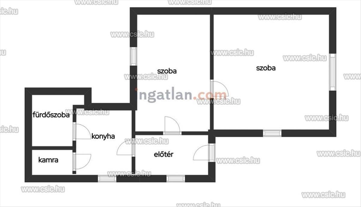 Az ingatlan két egymásból nyíló szobából, konyhából, előszobából, valamint egybenyíló fürdőből és WC-ből áll.