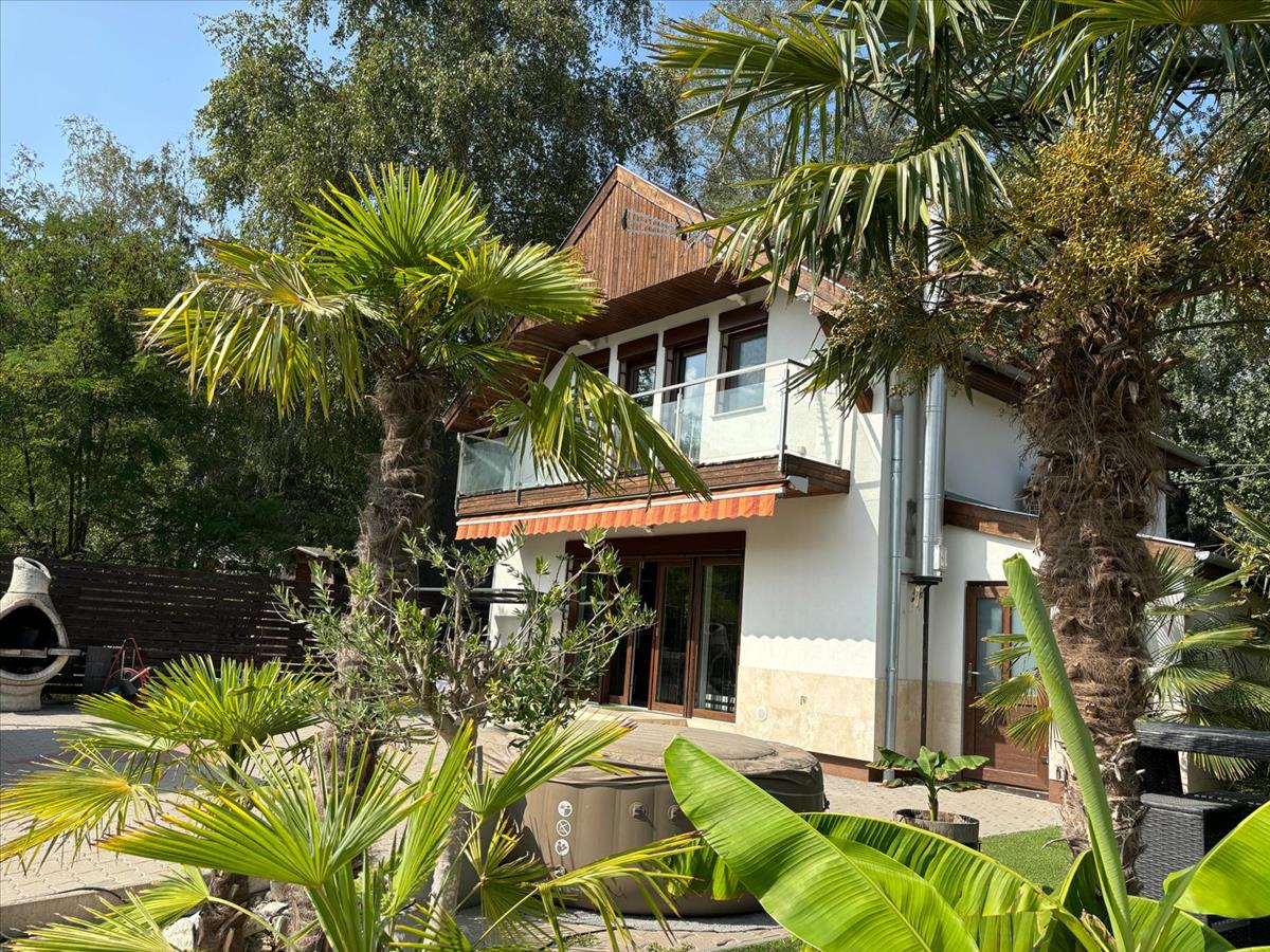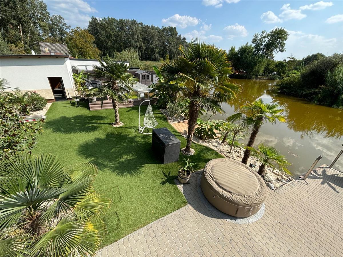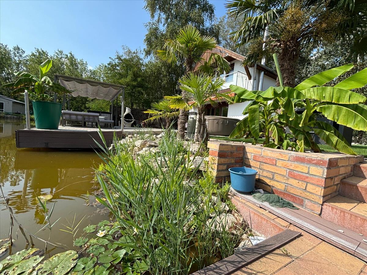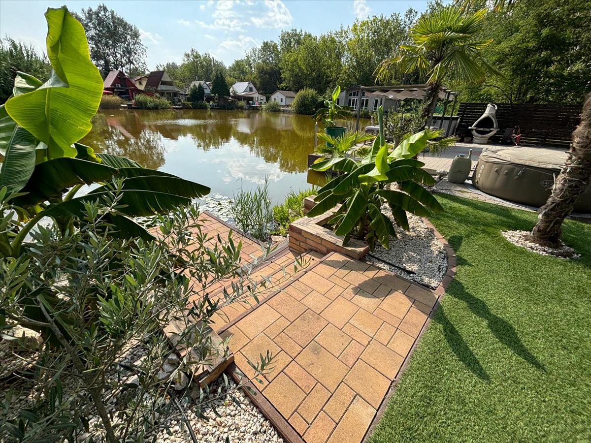 -Kert: automata öntöző rendszer a kertben mindenhol+utca fronton, műfű, mediterrán növények, stég, parkosított karbantartott, tágas vízparti terasz + grillező