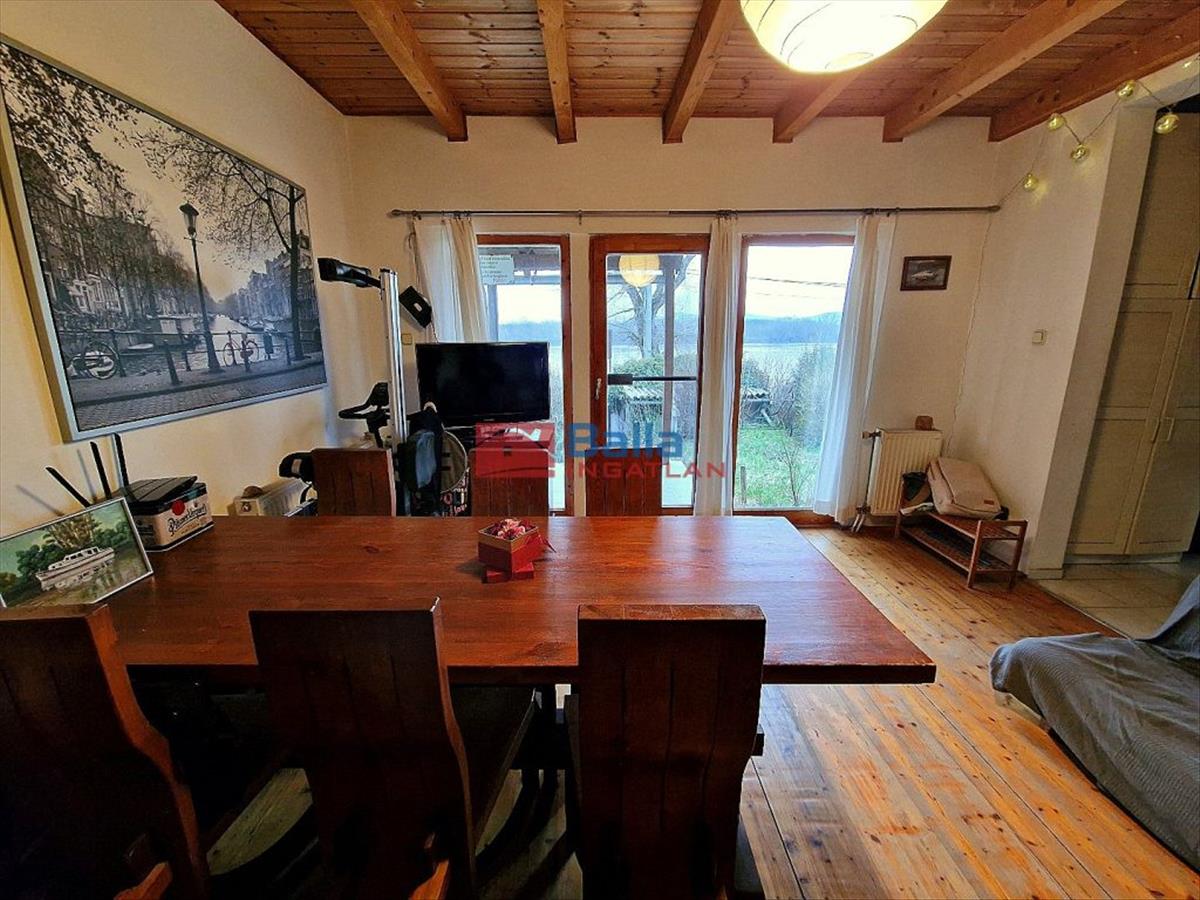 A ház jelenlegi állapotában is lakható: nappali, hálószobák, konyha és fürdőszoba alkotják. a belső térben a természetes faanyag dominál, a nappaliból pedig a kandalló melegénél gyönyörködhetünk a Duna látványában.