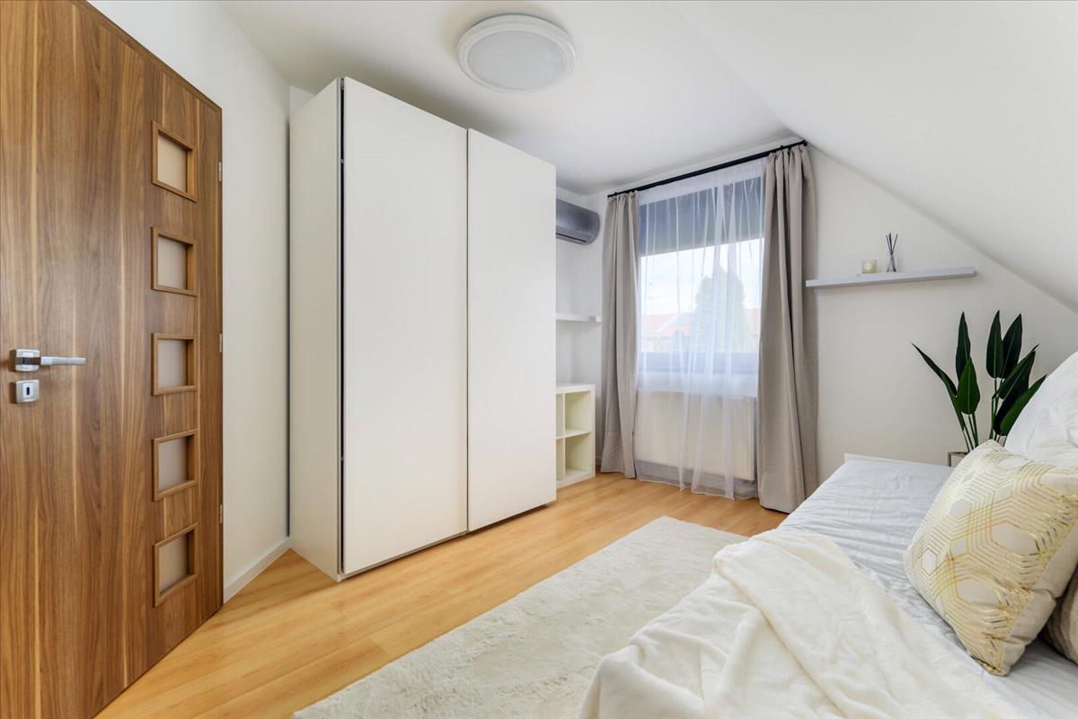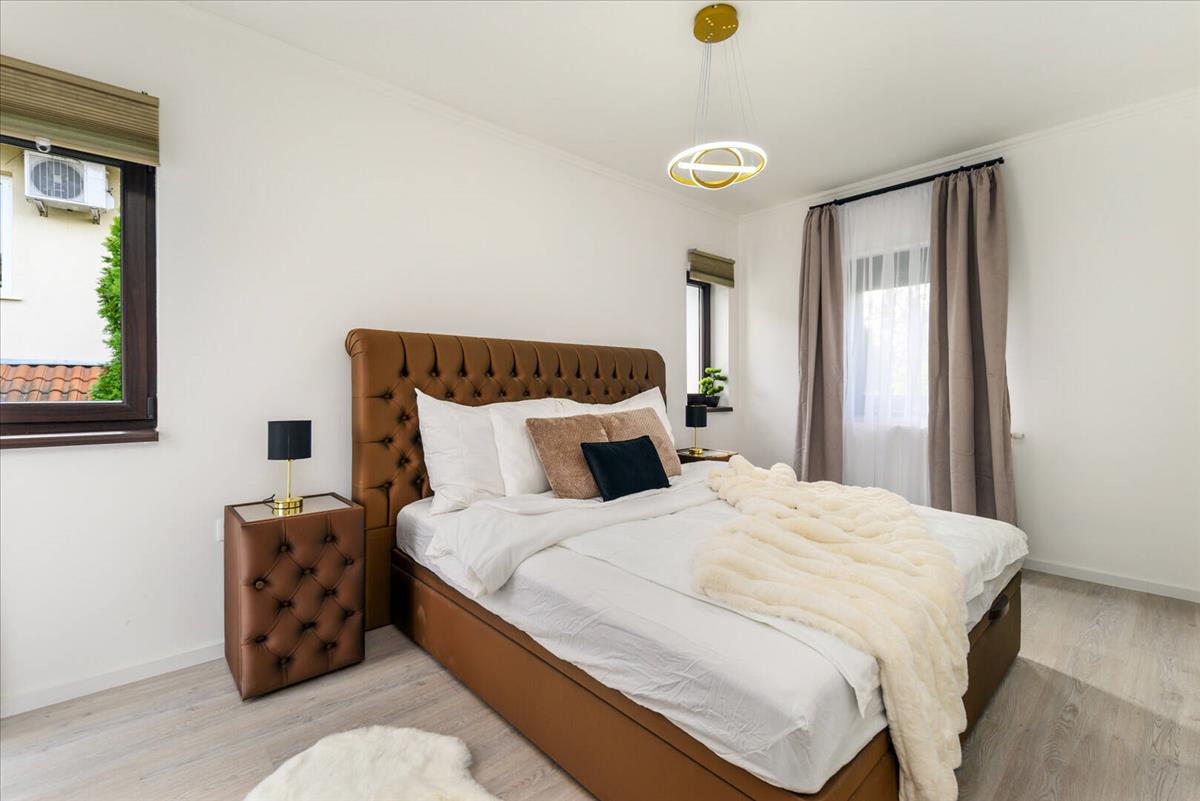 A hálószobák világosak, barátságosak és jól kihasználhatóak, mindegyikben érezhető az a letisztult elegancia, amely az egész házat jellemzi. a beépített szekrények és az átgondolt térkihasználás biztosítják a kényelmes mindennapokat.