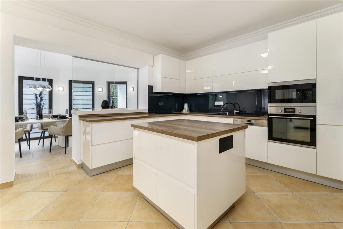 A modern, központi szigetes konyha nemcsak praktikus, hanem a tér egyik meghatározó eleme – ideális családi reggelekhez és baráti vacsorákhoz egyaránt.