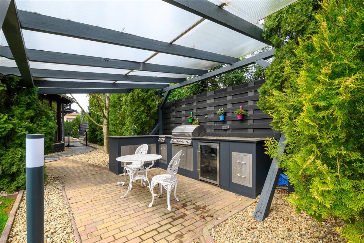 A fedett grillterasz ideális helyszíne a baráti és családi összejöveteleknek, kerti partiknak. Található még a telken 2 db kerti tároló, valamint egy külön leválasztott, igényesen kialakított kutyakennel is.