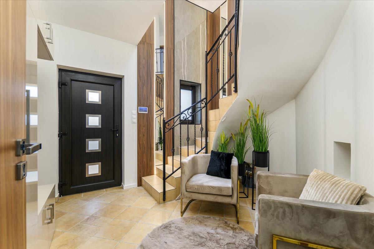 Ahogy belépünk, egy tágas, világos előtér fogad, ahol azonnal érezhető az otthon harmóniája. a letisztult vonalak, a prémium burkolatok és az igényesen megválasztott részletek mind azt sugallják: itt minden a helyén van.