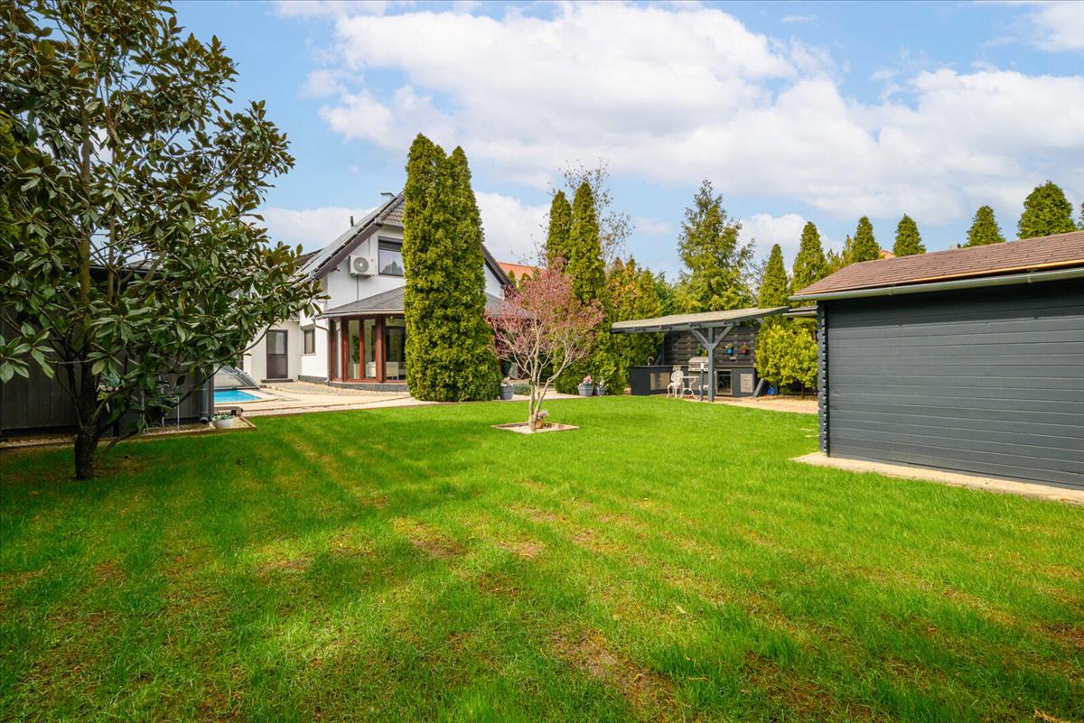 Ez az ingatlan nem csupán egy kerttel rendelkező ház, hanem egy zárt, jól szervezett élettér, ahol a funkcionalitás és az esztétikum tökéletes egyensúlyban van.