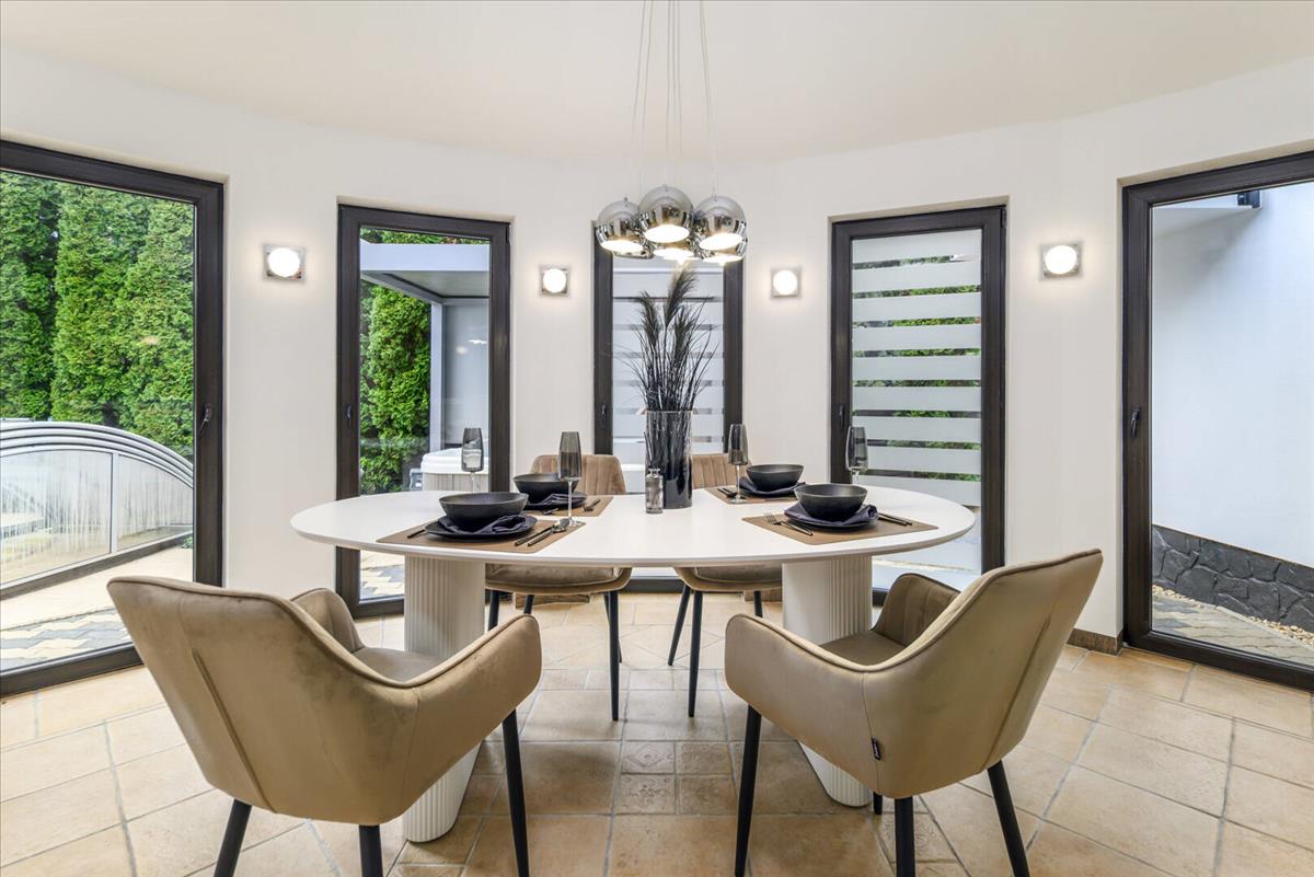 A tér különlegessége, hogy szinte észrevétlenül kapcsolódik a kerthez. a nagyméretű üvegfelületeknek és a hangulatos télikertnek köszönhetően a külső és belső terek egybefonódnak, így a természet folyamatosan jelen van az otthon mindennapjaiban.