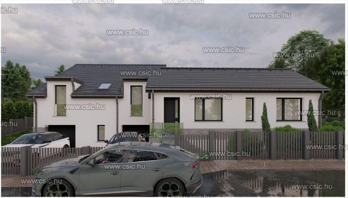 * Az egyik lakás egy földszintes, nappali + 3 szobás, 73 m²-es ikerházfél, 15 m²-es garázzsal