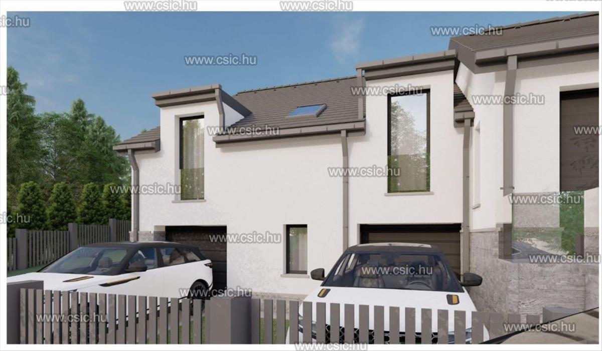 * a másik lakás egy belső kétszintes, nappali + 3 szobás, duplakomfortos, háztartási helyiséggel rendelkező, összesen 102 m²-es ikerházfél, szintén 15 m²-es garázzsal