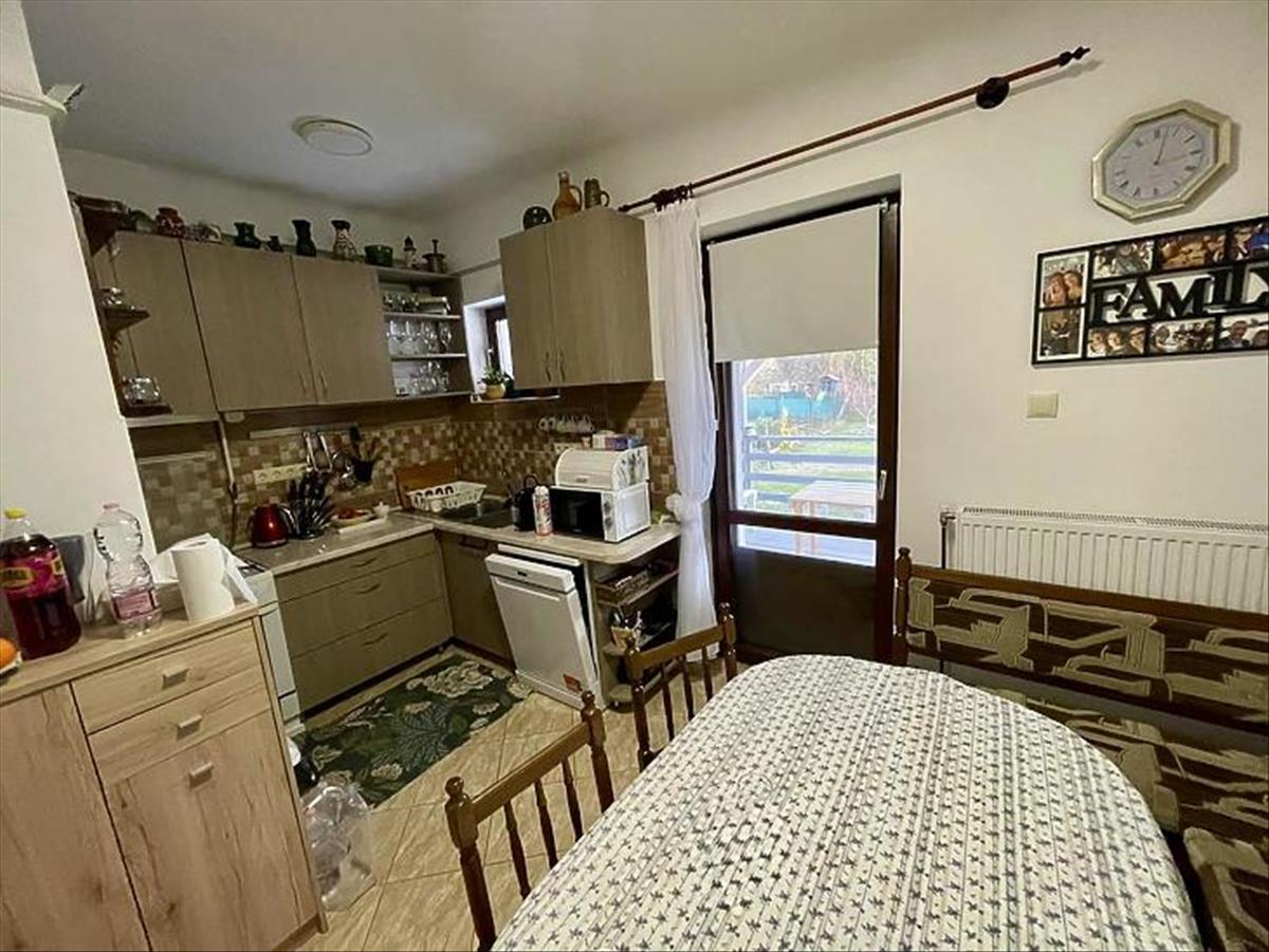 A fenti szinten, 2 hálószoba, nappali, fürdőszoba, és étkezővel egybenyitott konyha melyen keresztül egy 12nm-es terasz közelíthető meg. Ezen a szinten 2022-ben teljeskörű felújítást végeztek.