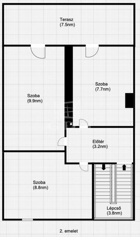 Belső terek jelenleg az emeleten 34nm, de az említett átalakítással 41nm-re bővíthető, az új terasz 10-15nm méretekig bővíthető.