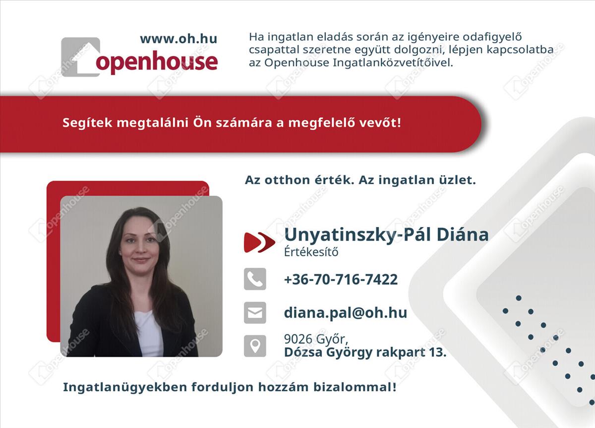 Az eladó házak menüpontban további hirdetések között is böngészhetsz. Ha van kedved, akkor böngészhetsz a Unyatinszky-Pál Diána összes hirdetése között, vagy akár a/az Open House Openhouse Győr - Révfalu Ingatlaniroda összes hirdetése között is.