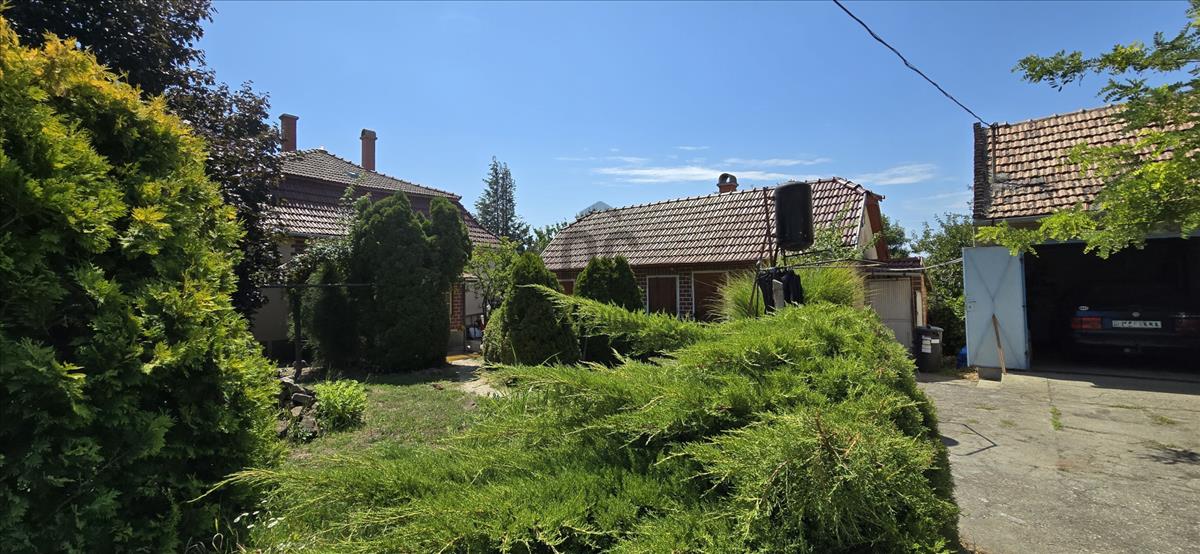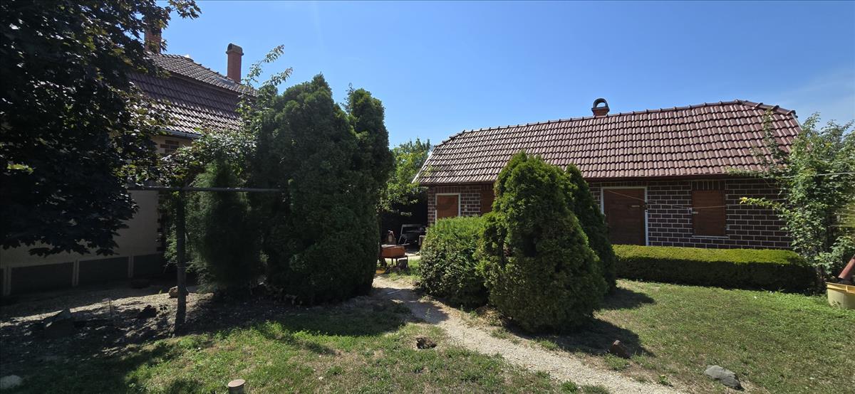-80 nm-es lakóház, 20 nm melléképület, 14 nm garázs, 34 nm műhely +szuterén