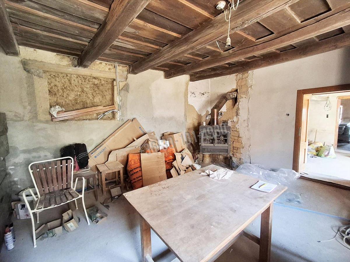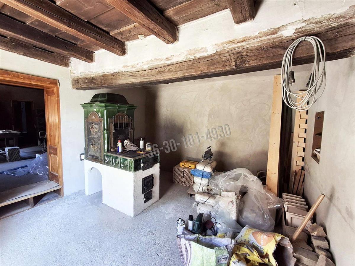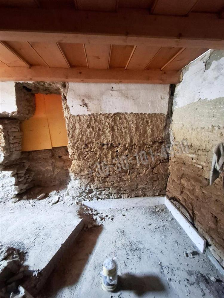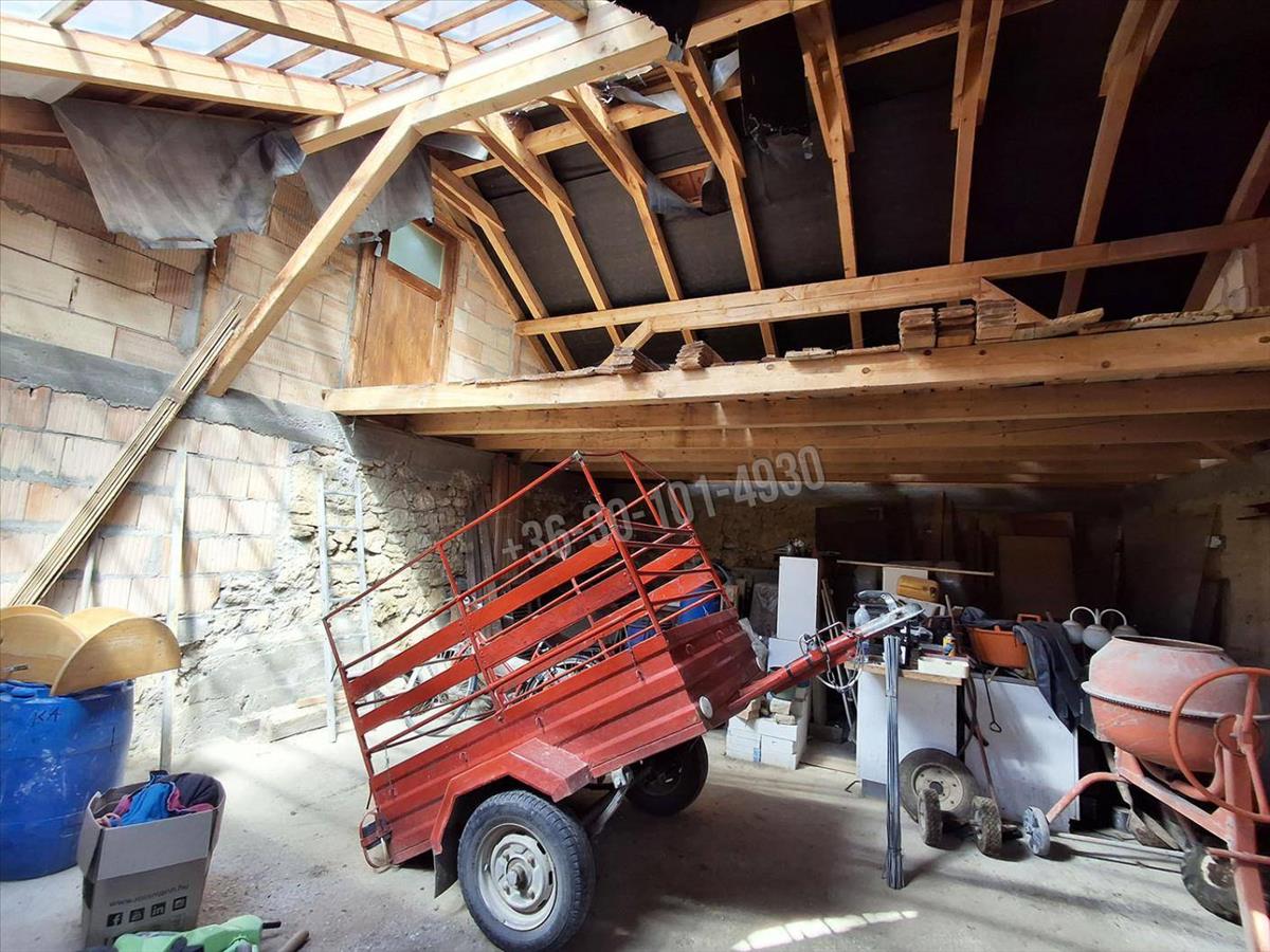 Az ingatlanba belépve a konyhába érkezünk, ahol egy mázas kemencét építettek, mely főzésre/sütésre és az ingatlan fűtését is ellátja, ha a padlófűtéssel és a radiátorokkal összekötésre kerül. Balra nyíló nappali helyiségben egy kandalló építés megkezdődött, amely kialakításnak köszönhetően szintén az egész ingatlan fűtésére alkalmas. Az utcafronti szoba kiválóan alkalmas hálószobának, a tetőtérben még egy gyerekszoba kialakítását megkezdték, igény szerint a tetőtér további beépítésre is alkalmas. Az ingatlanban még egy kamra, egy külön wc és fürdőszoba + wc kialakítása is megkezdődött. a gazdasági épület irányába is tovább bővíthető az ingatlan. a garázs méretének köszönhetően akár 3 autónak is helyt biztosíthat.
