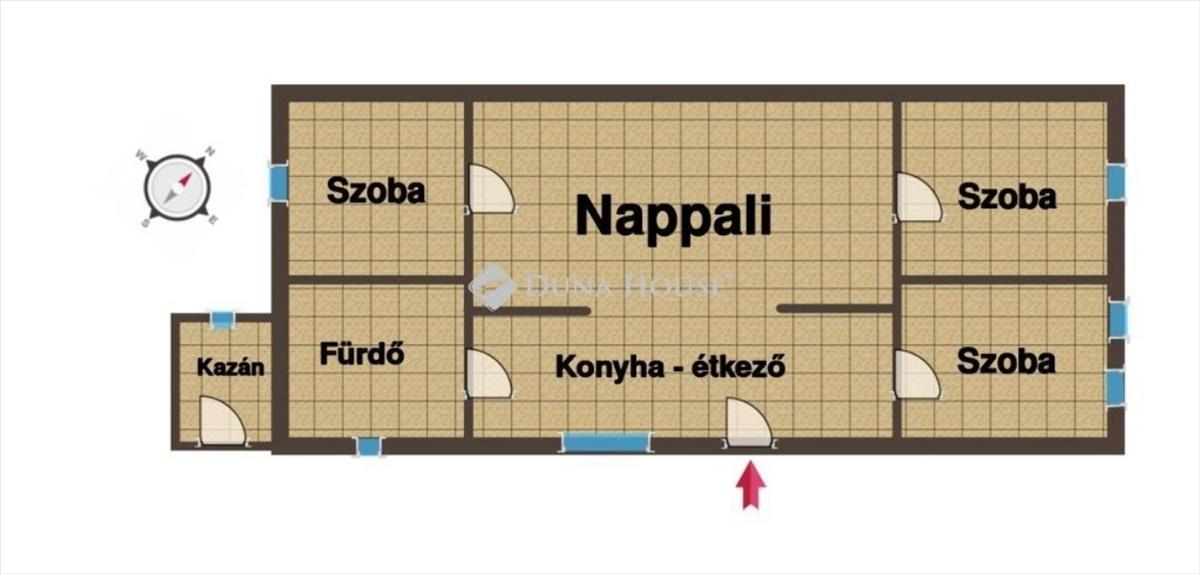 Amerikai konyhás nappali, 3 külön nyíló hálószoba, nagy fürdőszobával, kazánházzal. Bővíthető beépíthető felsőszint, két szoba és fürdő kialakítható, vezetékek a csatlakozáshoz fenn vannak a tetőtérben.