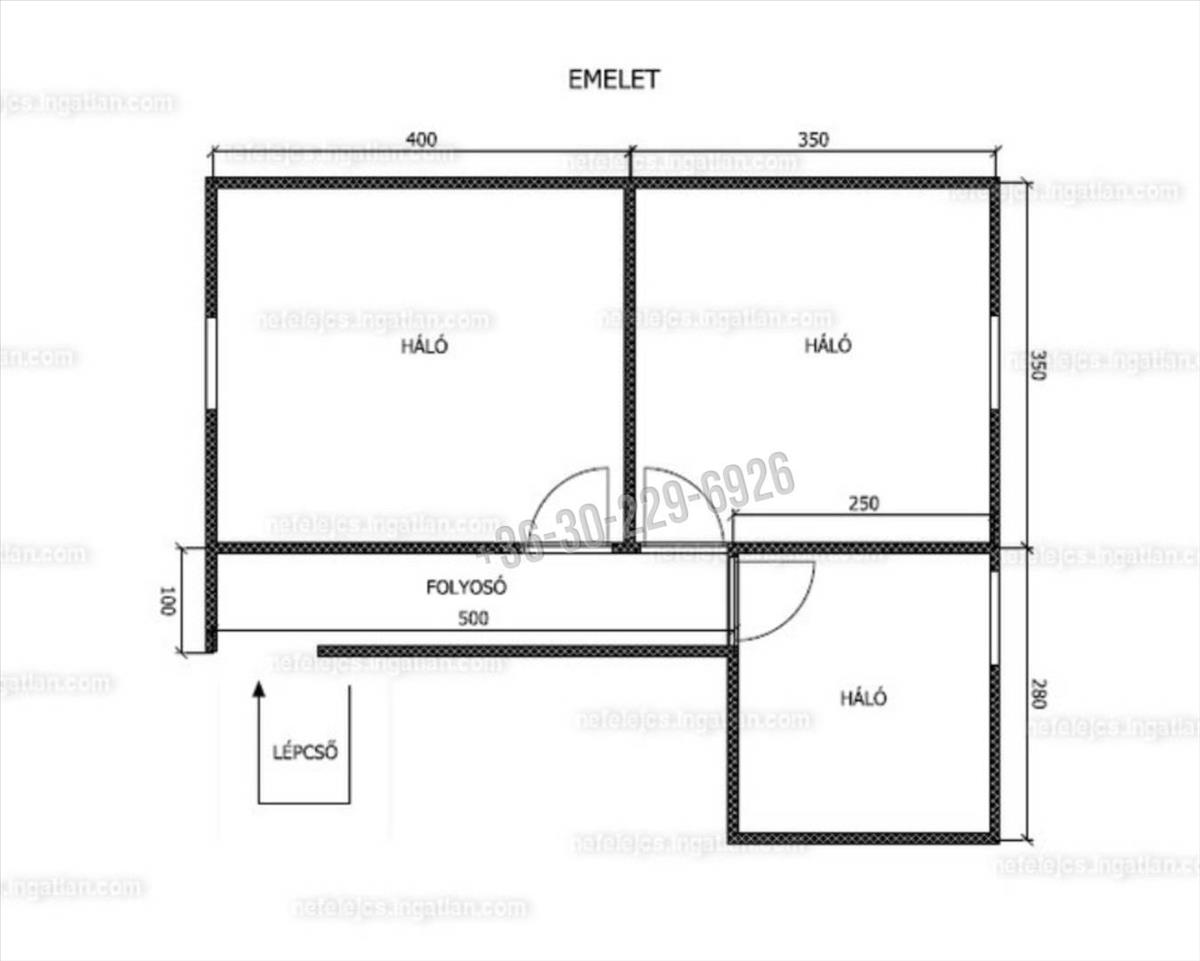 Emelet: közlekedő, 2 szoba, fürdőszoba.