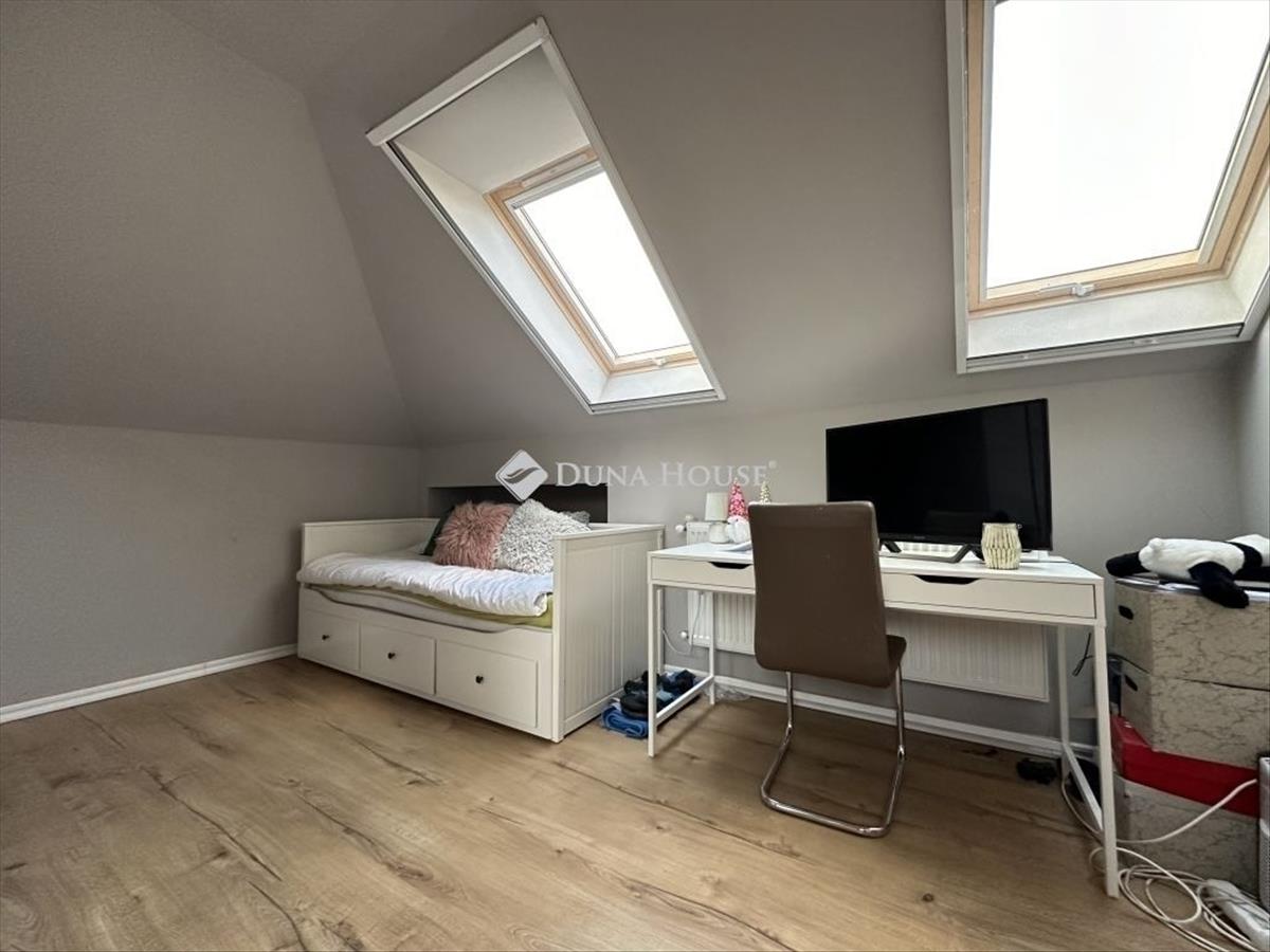 A beépített tetőtérben két világos hálószoba van, melyek akár home office-nak is tökéletesek. a ruhák, kiegészítők rendben tartására egy gardrób szoba nyújt lehetőséget, de akár egy jó irattár is válhat belőle. Az emelet is rendelkezik teljes fürdőszobával.