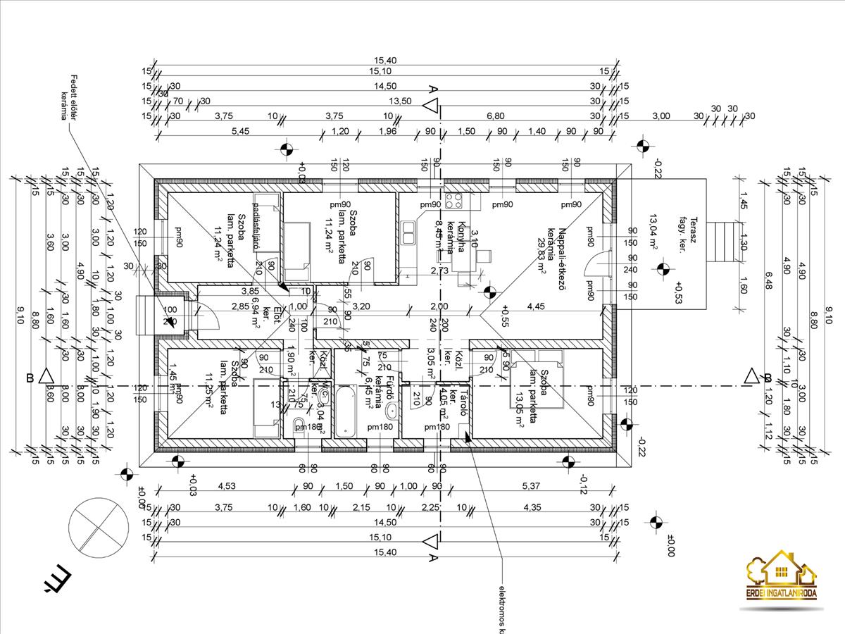 Az ingatlanban egy előszoba, egy amerikai konyhás nappali, 4 hálószoba, egy fürdőszoba, egy külön wc és egy kamra került kialakításra. a nappalihoz egy 13 m²-es terasz kapcsolódik.
