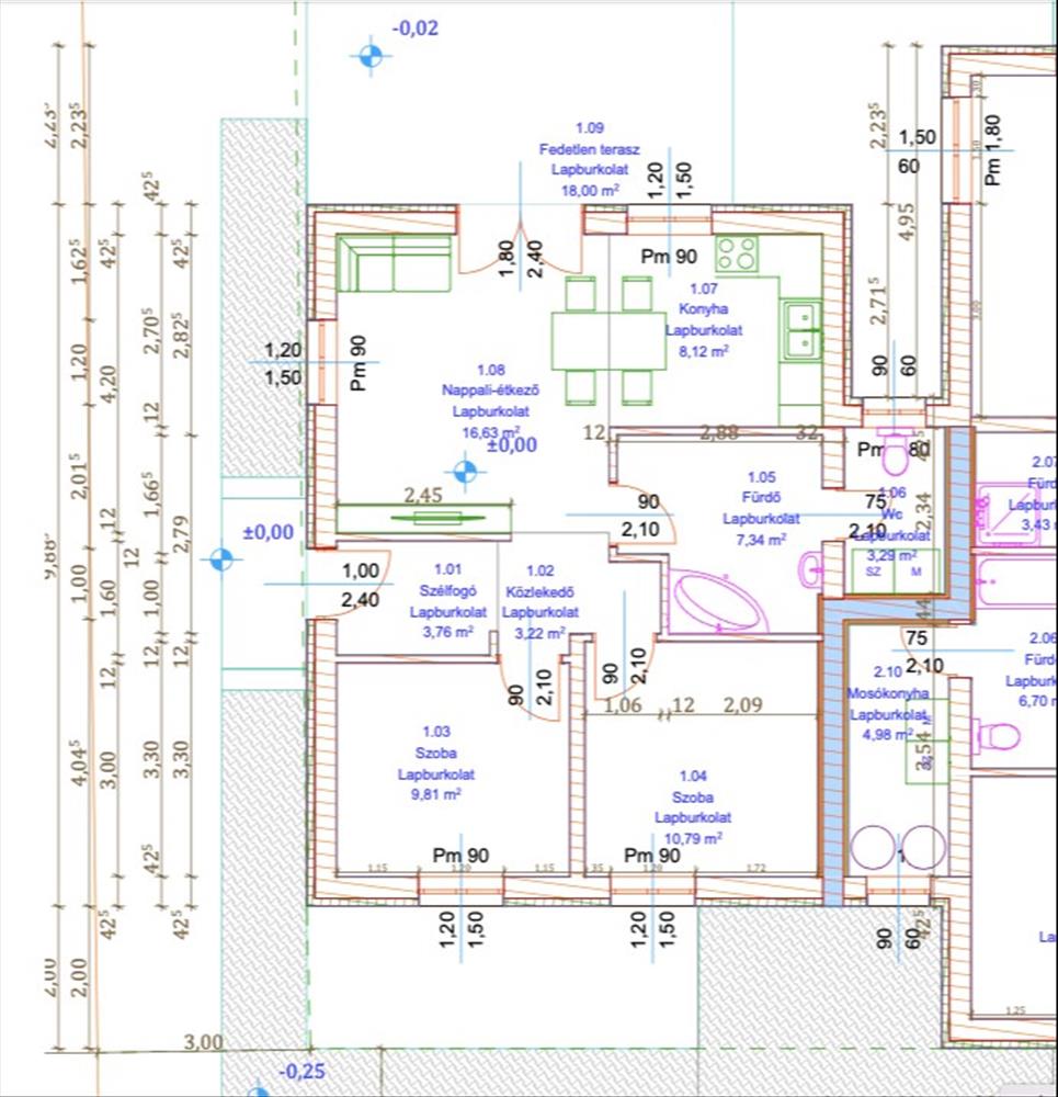 A belső tér központja a 26, 75 m²-es amerikai konyhás nappali, amely világos, jól bútorozható és kényelmes teret biztosít a mindennapokhoz. a lakásban két külön nyíló hálószoba került kialakításra, 10, 79 m²-es és 9, 81 m²-es méretben, amelyek ideálisak hálószobának, gyerekszobának vagy akár dolgozószobának is. a lakás komfortját egy 7, 34 m²-es fürdőszoba, valamint egy külön WC–háztartási helyiség növeli, az előtér és a közlekedő pedig jól elkülöníti a lakótér funkcionális egységeit.