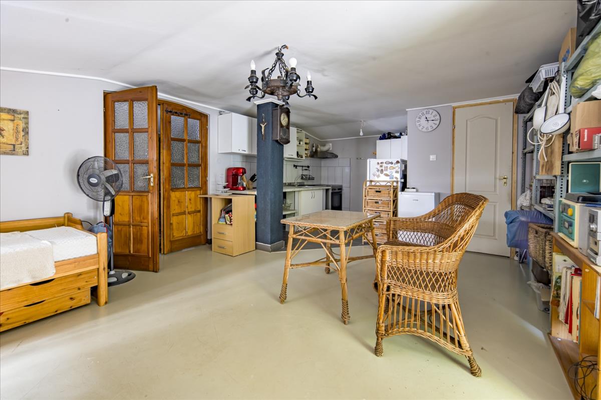 Az épülethez tartozik egy 60 m²-es lakrész is, amelyben amerikai konyhás nappali, zuhanyzó és wc található.