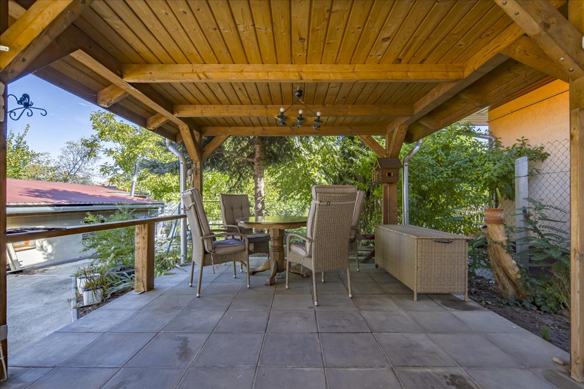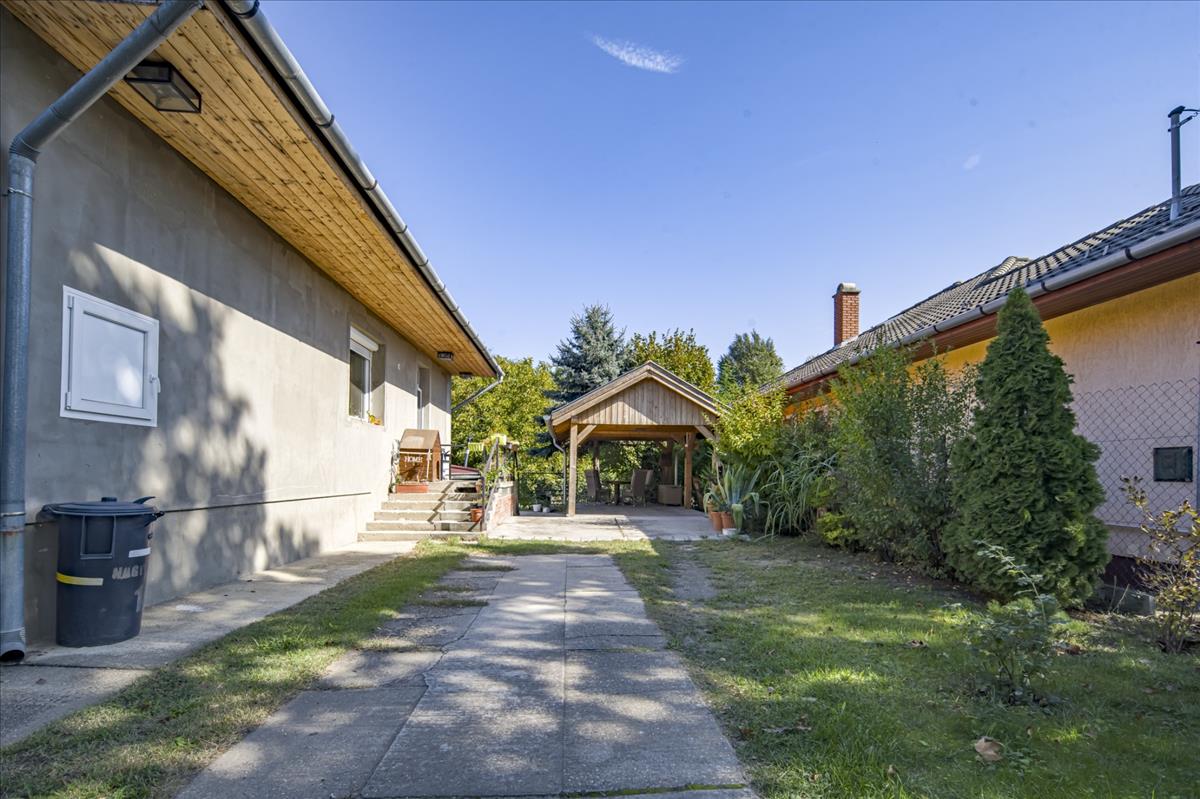 Az udvaron fedett kocsibeálló és tároló is rendelkezésre áll.