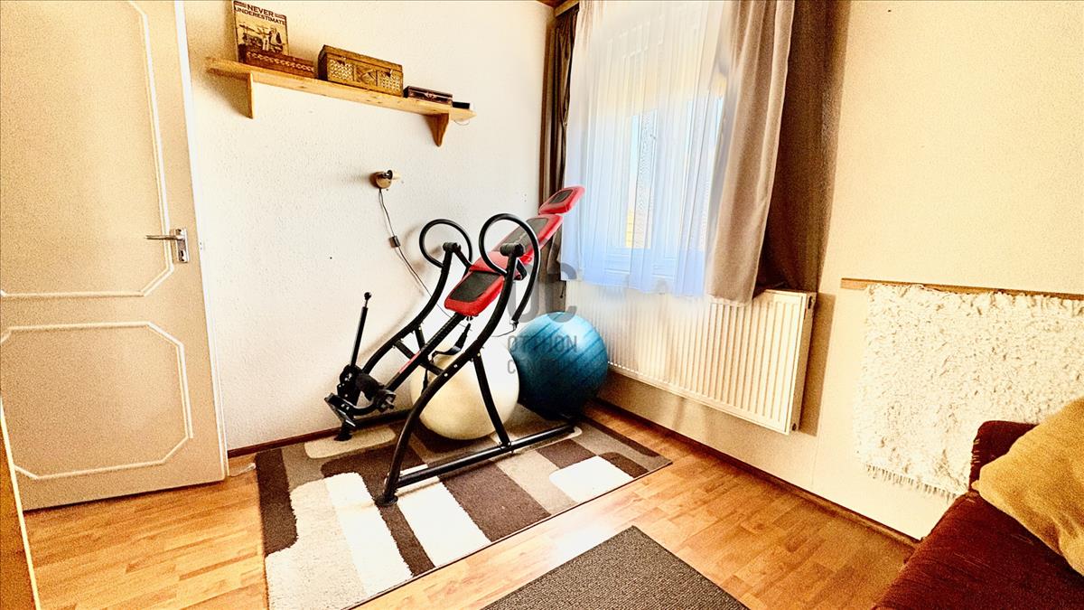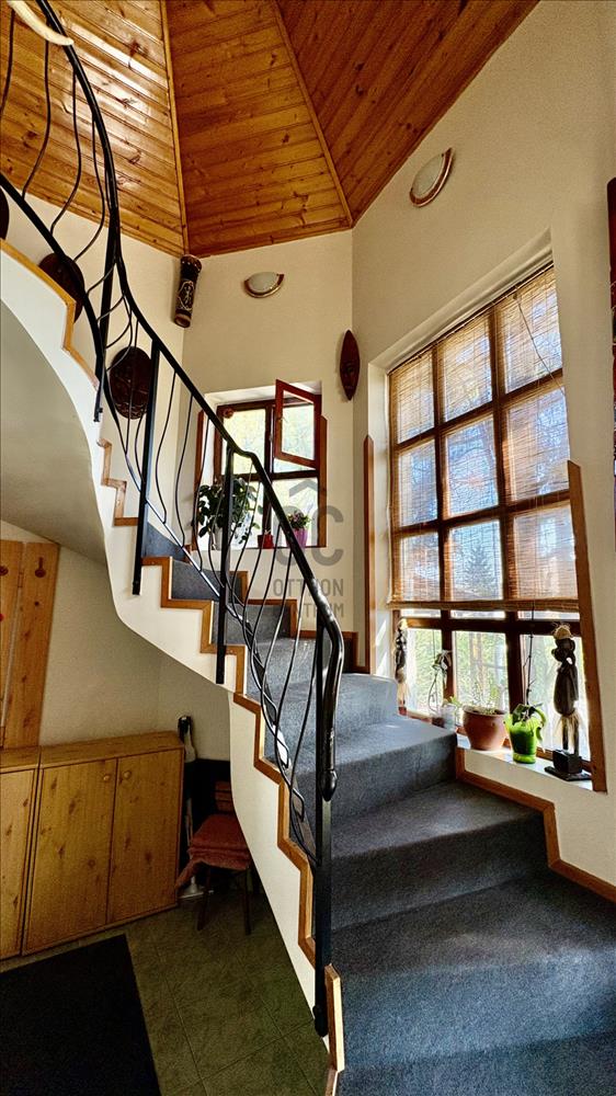 • fa nyílászárók mindkét szinten, dupla és tetőtéri ablakok, a nagy ablakokon redőnyök árnyékolják a szobákat