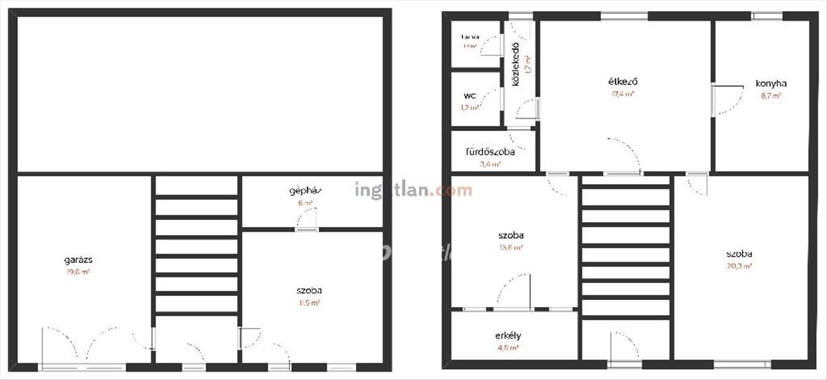 A ház alatt lévő szuterén részben 1 félszoba, kazánház és egy aknás garázs található.