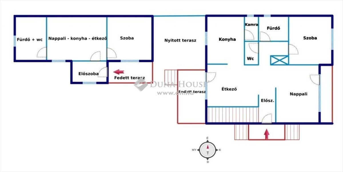 - nappali + 3 hálószoba- egy kádas és egy zuhanyzós fürdőszoba