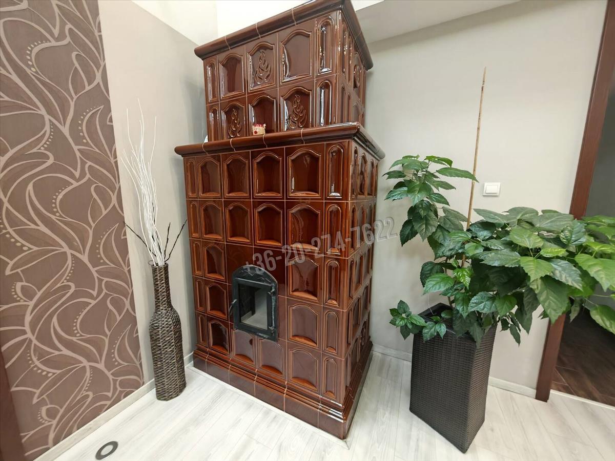 padlófűtés, nappaliban padlókonvektor és hangulatos cserépkályha, radiátor /szobákban/