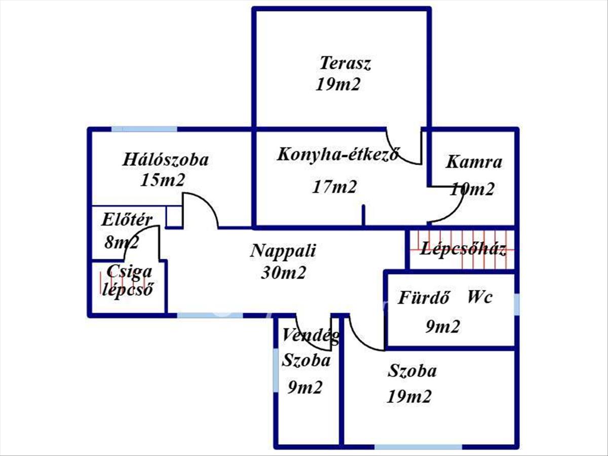 Szobák: 7, konyha: 2, fürdőszoba: 2, és wc: 2, tároló helyiségek, erkély, mindkét szinten.