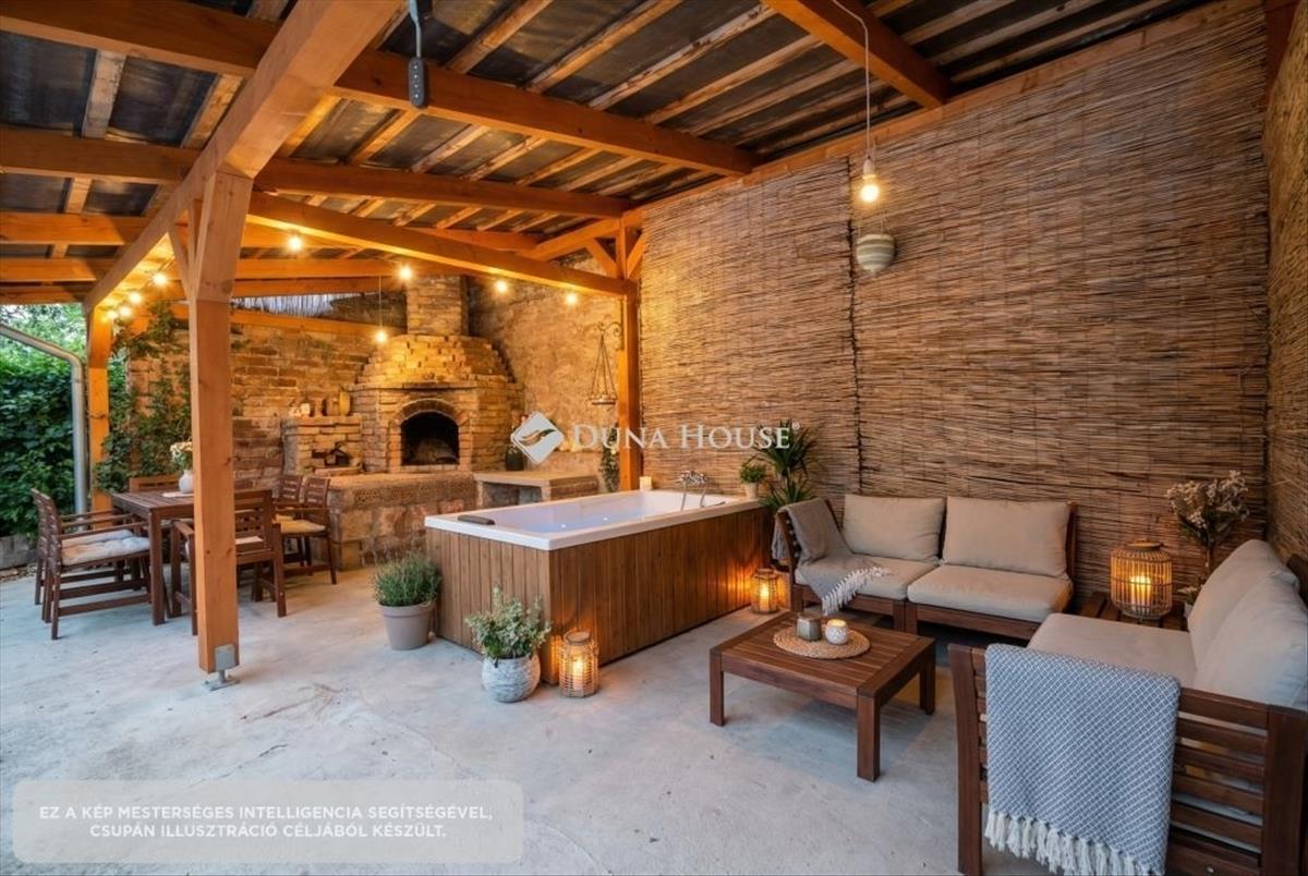 A fedett terasz és az udvar adottságai kiváló alapot adnak egy szaunarész vagy wellness-jellegű pihenőtér kialakításához ami apartmanos hasznosítás esetén komoly értéknövelő tényező.