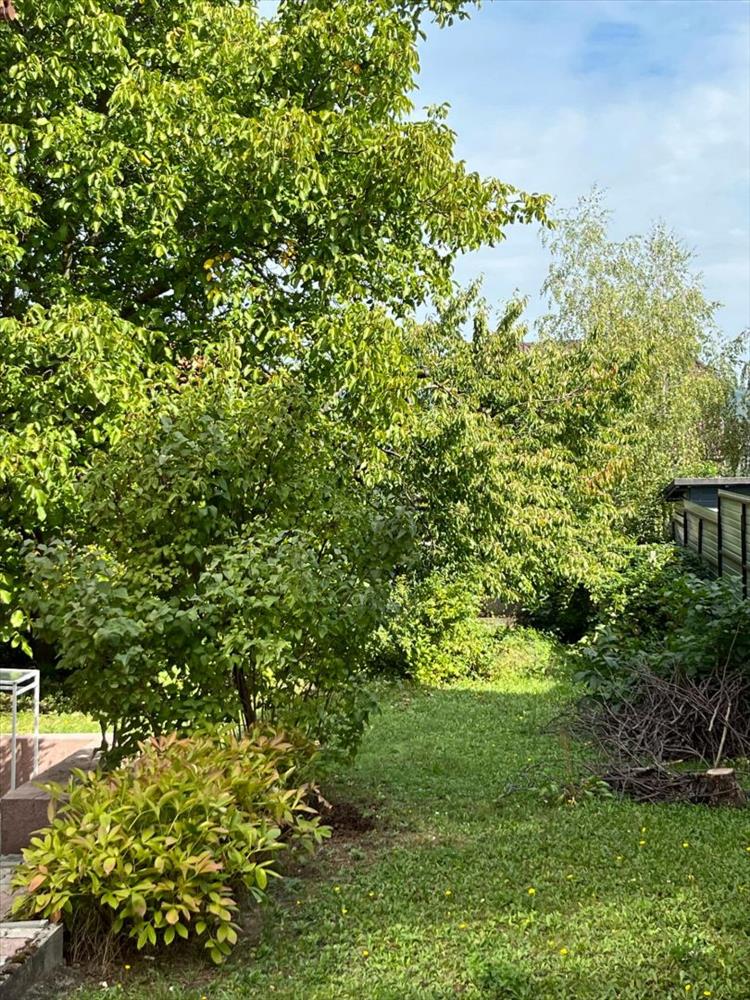 A kert hangulatos, hatalmas fák biztosítják az intimitást és a nyári melegben nyújtanak árnyékot.