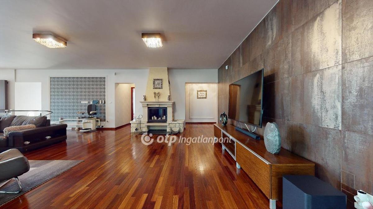 A lakószinten hatalmas, egybenyitott amerikai stílusú nappali és étkező került kialakításra, melyben kandalló és 6 személyes jakuzzi is helyet kapott.