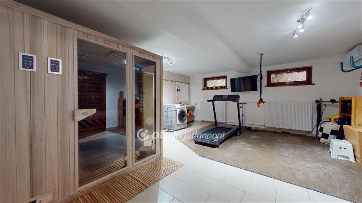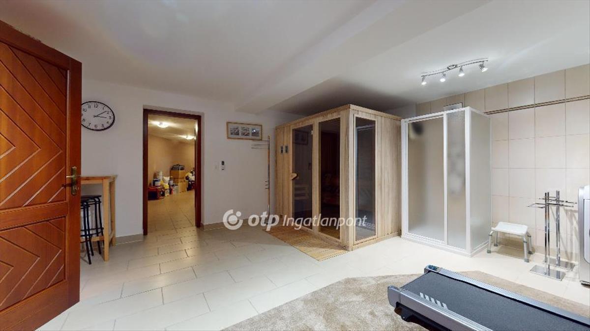 Az alsó szinten került kialakításra egy elegáns előszoba, 36 m2-es dolgozó szoba, 30 m2-es vendégszoba, tágas konditerem, rendkívül hangulatos közel 15 m2-es borospince és a háztartási helység.