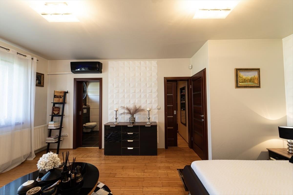A ház építése során kizárólag prémium minőségű anyagokat használtak: borovi fenyőfa nyílászárók zsalugáterekkel, brazil fa és bambusz parketták, spanyol kerámia burkolatok, valamint többféle fűtési rendszer – padlófűtés, szegélyfűtés, radiátor és a működő fatüzeléses kandalló – gondoskodik az otthon egyedi klímájáról. Az inverteres klímaberendezések minden helyiségben biztosítják a kellemes hőmérsékletet, a biztonságtechnikai rendszer, a kamerák és a videós kaputelefon pedig a maximális védelmet és kényelmet szolgálják.