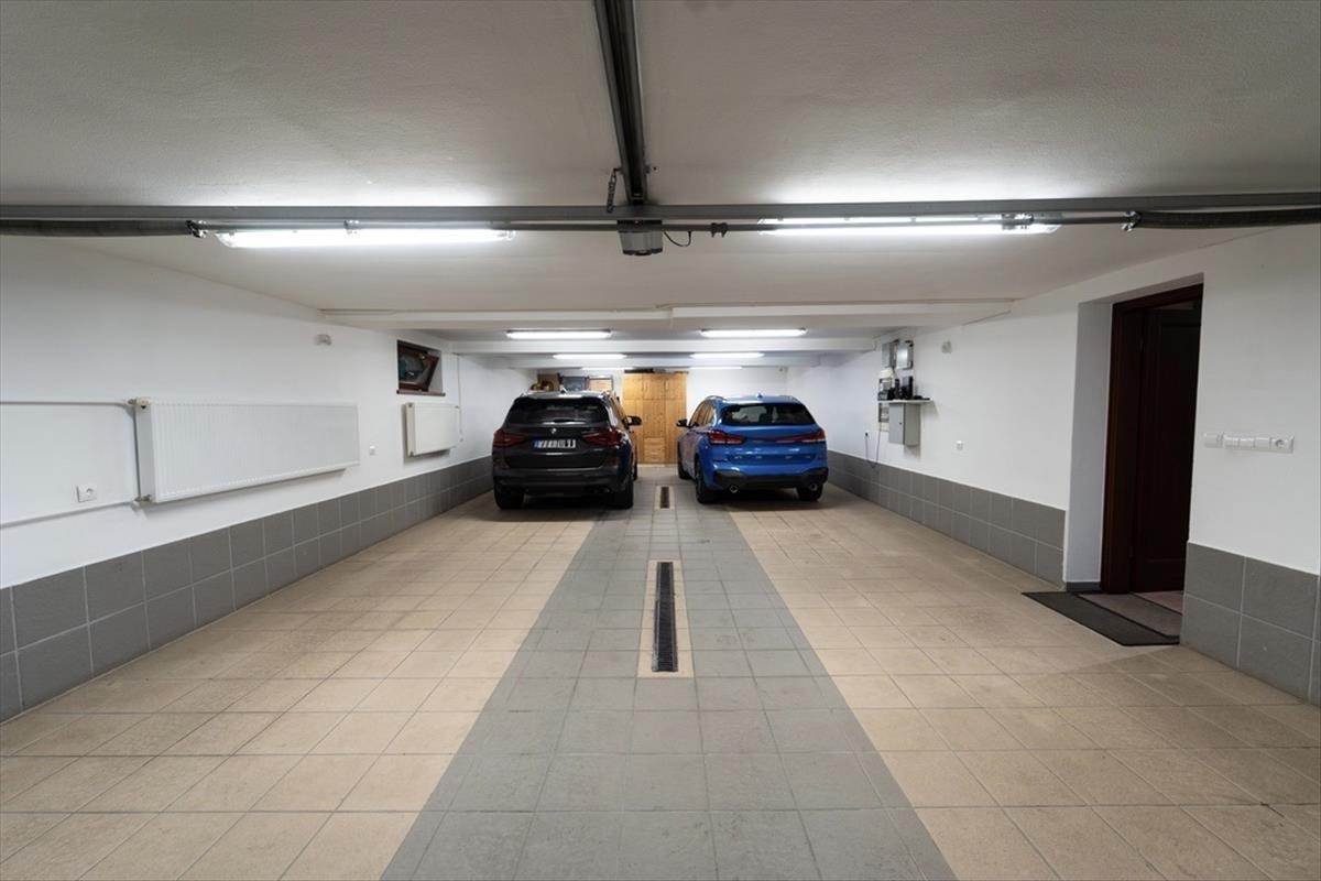 Az alsó szint a funkcionalitás és a pihenés tökéletes egyensúlyát kínálja. Itt kapott helyet egy tágas dolgozószoba, vendégszoba, valamint egy teljesen felszerelt konditerem Finn és infraszaunával, zuhanyzóval. a félköríves, dísztéglás borospince nemcsak a borok tárolására, hanem hangulatos vendégfogadásra is ideális. a háztartási helyiség és a mosókonyha központi ruhaledobóval csatlakozik az emelethez, míg a minőségi gépészet – gázkazán, melegvíztároló, vízlágyító és vízszűrő rendszer – a ház technikai hátterét biztosítja. a 84 m²-es teremgarázs négy autó befogadására alkalmas, az udvaron pedig további zárt parkolóhelyek is rendelkezésre állnak.