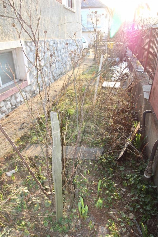 Az udvaron egyéb tárolóhelyek mellett, egy nagy méretű aknás garázs is van, sőt a kert, a maga mintegy 1000 nm -es méretével további fejlesztési lehetőséget ad. Az összközműves telek trapéz alakú, kb. 20 X 50 m, ahol az utcafront rész a 20 m.