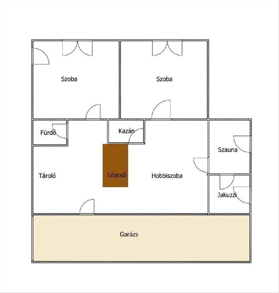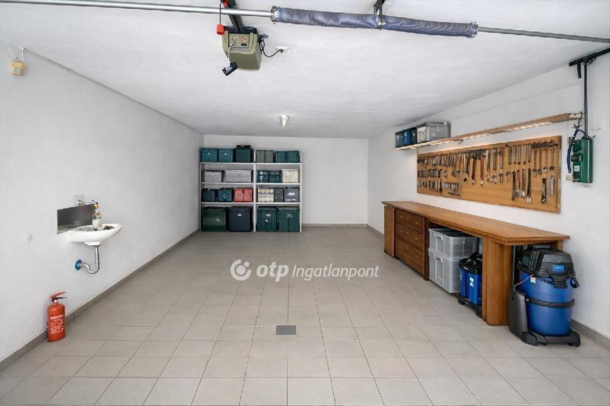 a felső szinten három nagy méretű szoba, egy tágas nappali, gépesített konyha, külön kamra, valamint fürdőszoba kapott helyet, míg az alsó szinten két utcafronti szoba, egy fürdőszoba, egy hobbi szoba, jakuzzi és szauna biztosítja a mindennapi kényelmet és a kikapcsolódást. Erről a szintről közvetlen megközelítéssel érhető el a kétállásos garázs, amely praktikus és időjárástól független parkolást tesz lehetővé.