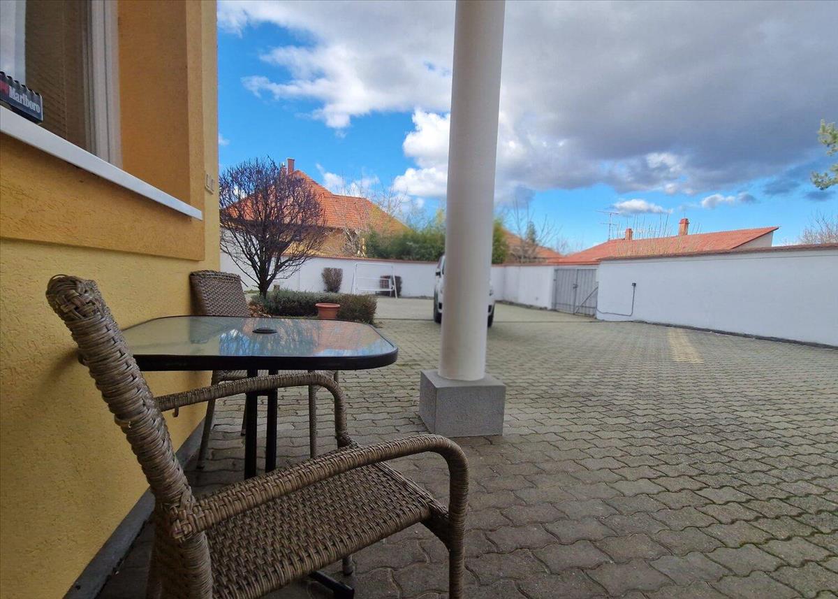 520 nm -es, rendezett, térkövezett udvar. Több autó parkolási lehetőség.